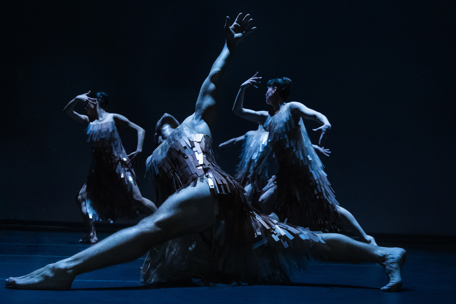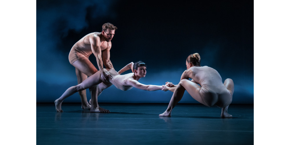 Die russische Kostümdesignerin Irina Shaposhnikova hat die Tänzerinnen und Tänzer dafür in eine Art weichen, leicht fließende, kurze Stachelkleider gesteckt, der die Assoziation zu Mikroorganismen zulässt. Die Organik, die in den Bewegungen entsteht, wenn sich diese „Stacheln“ leicht aufrichten, erinnert ein bisschen an die Entwürfe von Iris van Herpen. Offen bleibt, wie sich diese nicht ganz menschliche Wirkung mit den nur zu menschlichen beiden folgenden Teilen verbinden will. Dieser erste Teil konzentriert sich auf das Miteinander, das verbunden Sein miteinander. Der dramaturgische Übergang zum zweiten Teil mit Arvo Pärts „Con Sublimatá“ ist zwar deutlich wahrnehmbar gestaltet, aber ohne einen Bruch in der Entwicklung zu bringen.