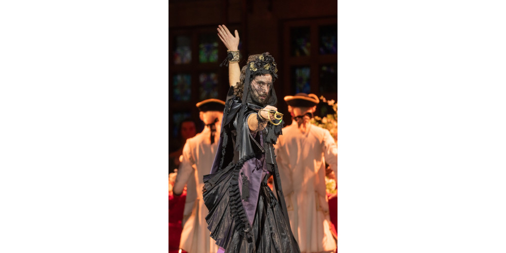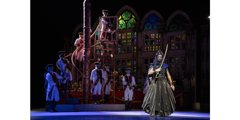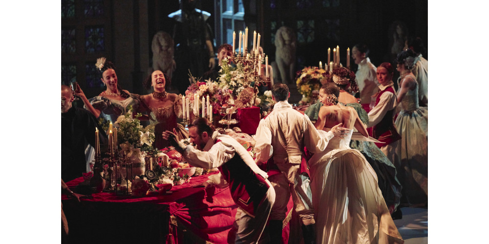 Historisierende Kostüme mit Witz: Der prominente Ausstatter Tim Yip spielt mit Merkmalen unterschiedlicher Epochen, barocke Uniformen treffen auf Biedermeier-Frisuren und den „Cul de Paris“. Yips Neuinterpretation des Gesäßpolsters aus der Mode der vorletzten Jahrhundertwende zeigt unter dem Aufsatz gleich den behosten oder nackten Popo. Solche Attribute fließen in die dramaturgisch zündenden Interventionen ein, die sich durch den dreiaktigen Abend ohne Pause durchziehen.