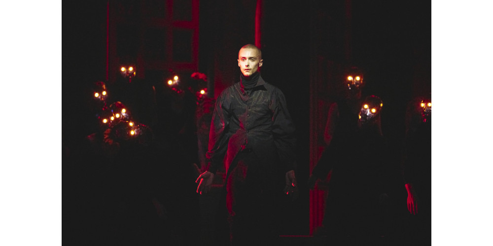 Cherkaoui setzt Johann Strauss (u. a. Csárdás aus „Ritter Pásmán“, „Egyptischer Marsch“, „Persischer Marsch“, „Rosen aus dem Süden“) traditionelle, japanische Live-Musik entgegen. Im Orchestergraben dirigiert Constantin Trinks das Wiener Kammerorchester mit spritziger Verve. Auf der Bühne sind Tsubasa Hori, Shogo Yoshii und Kazutomi Kozuki (Gesang), ganz in Schwarz gekleidet, Teil der Idee einer Spiegelung. Östliches und westliches Denken stellt der Choreograf personifiziert durch Figurenkonstellationen einander gegenüber. Das Kriegsgerät, ein Säbel, wird von Anfang an ins Geschehen implantiert. In einer minutiös einstudierten, vorgegaukelten Tötung will sich ein backenbärtiger Infanterist, vielleicht Strauss, seiner Nöte und damit seines dunklen Alter Egos entledigen.