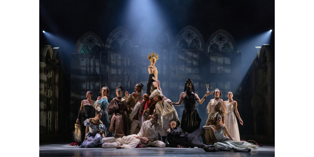 Nach einem frugalen Gesellschaftsmeeting an einem mit Früchten aufgetürmten weinroten Bankett zieht orgiastischer Militarismus auf das Ball-Feld ein. Ein Soldaten-Trupp in barock-bunter Adjustierung samt Perücke findet seine abgeklärte Entsprechung in asiatischer Kampfkunst. Diese dramaturgische Idee geht auf, weil der Choreograf damit eine breite sinnhafte Interpretationsfläche eröffnet. Sie mag, ganz simpel von der Auseinandersetzung der Habsburgischen Monarchie mit der Wirtschaftsmacht Japan und dem Einfluss asiatischer Denkmodelle im 19. Jahrhundert beginnen, auch wenn „Imperial Ball“ ganz und gar nicht dokumentarisch ist. Sie mag sich fortsetzen im Sinn des willfährigen militaristischen Ehrbegriffs, der einem Zeremoniell entsprungen war. Und sie eröffnet die inszenatorische Möglichkeit auf Hohl-Heiteres, auf Dekadenz und eine aus den Fugen geratene „Feierlichkeit“ eine Abfuhr in die Ernüchterung, in den Tod folgen zu lassen. Schwarze Gestalten, deren Augenöffnungen geisterhaft glühen, beherrschen diese Transformation einer Gesellschaft. Aber schon zur Schnellpolka „Unter Donner und Blitz“ setzt das große Töten an: Jeder Tusch ein Schuss aus dem Gewehr – von Frauen. Ein tanzendes Leichen-Feld verkörpert das Ende einer Epoche. Der Todesengel in asiatischer Ritterrüstung beherrscht statuarisch den Schlussmoment.