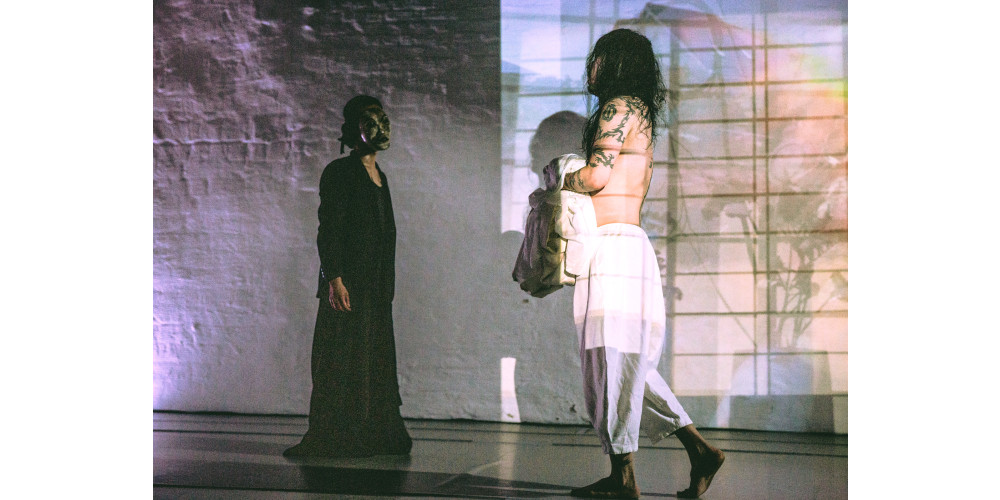 Visually, the two create a study in contrasts. Takahashi moves with free limbs driven by inner thoughts and feelings, with explosive energy. Kawamura operates with Noh's contained precision. Stillness as intensity, minimalism as abundance. Both dancers' costumes retain elements of Japanese tradition, incorporating soft, constantly flowing scarf fabrics. Lighting and projection further amplify and blend the boundary between black and white.