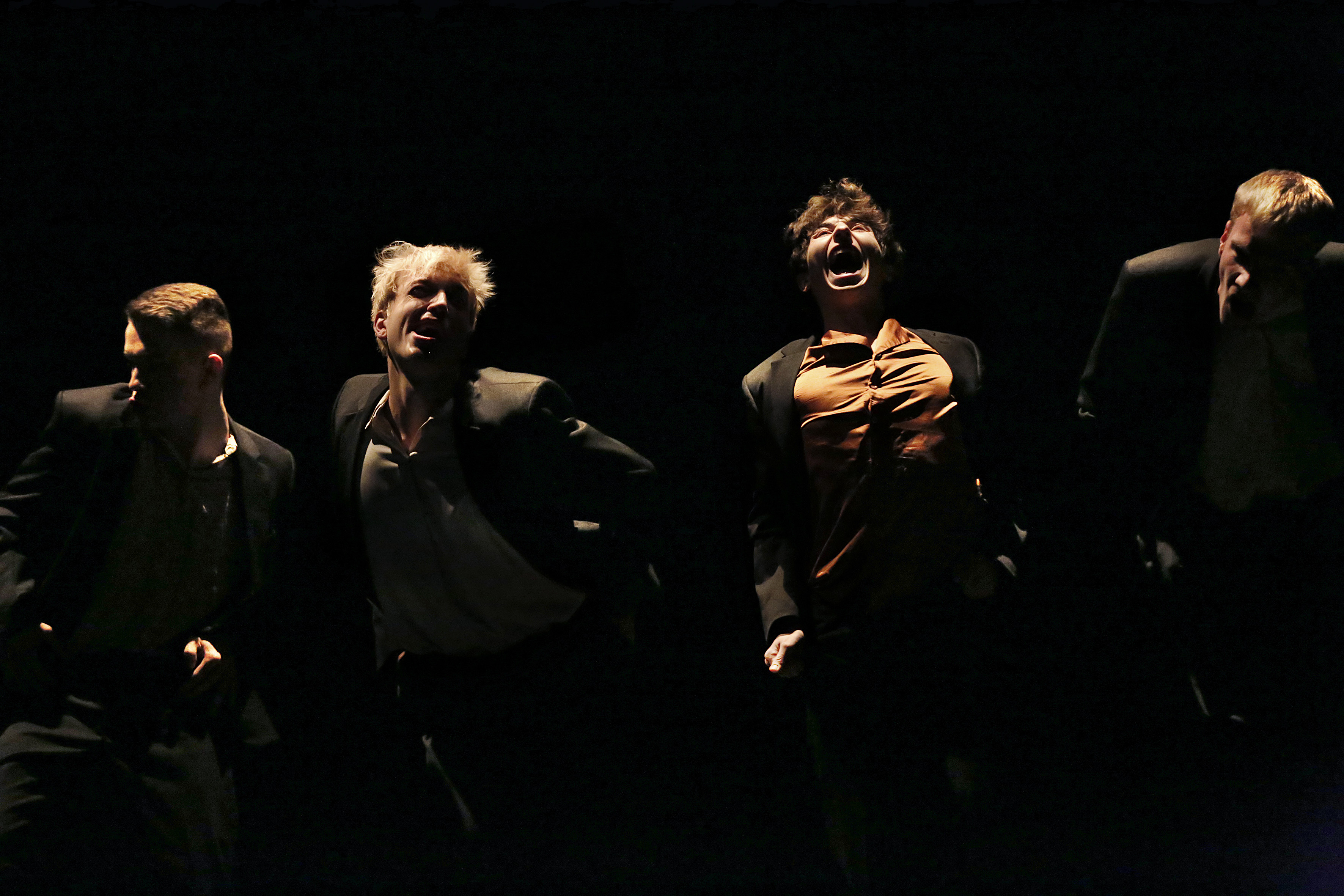 Das alles hat eine Isoliertheit, ein Gefühl der Leere, das fast schon in Hilflosigkeit umkippt. Bis schließlich Rigo Saura dem ganzen mit einer inneren Energie begegnet, die seine fünf Tänzer innerlich fast zu zerreißen scheint. Sein Titel „To Be Torn To Pieces“ verklausuliert deshalb auch nichts. Dass seine Arbeit die deutlich stärkste des Abends ist, damit hat man rechnen können, nachdem er bereits im Oktober für das Ensemble des Theater Görlitz mit „Ominous“ eine beeindruckend intensive Arbeit geliefert hatte. In auffällig reduziertem Licht kämpfen sich die Tänzer in schwarzen Anzügen verkrampft durch anhaltende Stresssituationen, deren Druck sie in langen, hektischen Monologen zu bewältigen versuchen. Was immer sie auch tun, sie schaffen es nicht aus ihrer Haut. Gleichzeitig lässt sich nicht übersehen, wie sie aufrecht aggressiv mit Händen in den Hosentaschen offensichtlich aus einer deutlich privilegierten Position heraus agieren.