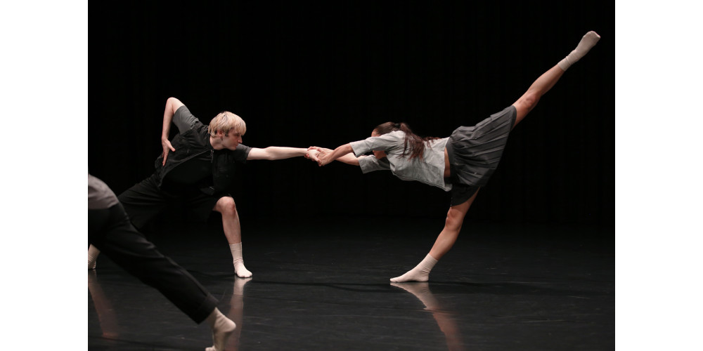Die Ergebnisse sind schon allein optisch recht düster, farblich in den Kostümen, dazu noch reduziert im Ansatz des Lichts. Unbequem und befremdlich auch viele Soundscapes. Hier haben die Choreograf*innen mit Studierenden der Hochschule für Musik zusammengearbeitet, die extra für die jeweilige Arbeit Kompositionen erarbeitet haben. Diese Kooperation zwischen den beiden Hochschulen läuft bereits seit einiger Zeit ziemlich erfolgreich.