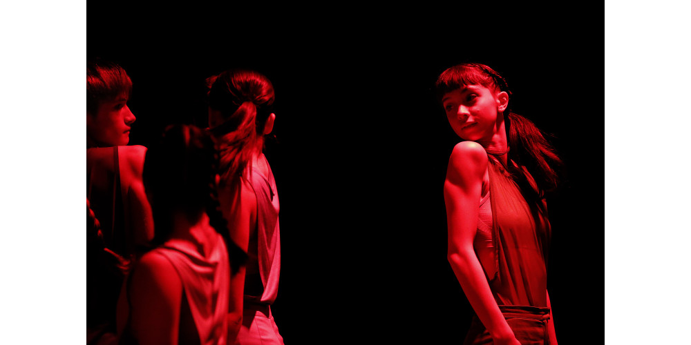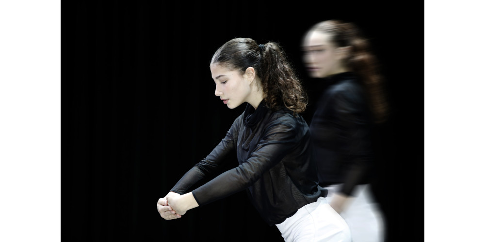 Genauso abrupt endet Kammy Lau Yin Kwans „The Ship“, in dem sie einen Tänzer mit fünf Tänzerinnen konfrontiert, die jeweils nur einen Spitzenschuh tragen. Das wird weitergetragen in einem Duett von Theo Qu Yang. Seinen komplexen intellektuellen Ansatz spiegelt er im sperrigen Titel „.spectacte(spectate(spectate(1)))“. Ausgehend von der Art und Weise, in der sich die beiden Tänzerinnen anschauen, entwickelt er in erst gleißend blendendem Licht ein Nebeneinander, in dem keine Verbindungen gesucht werden. Seltsame Sounds, die an das Rufen von Elefanten erinnern, dann wie das Summen von Fliegen. Unter Stroboskopgeflacker entsteht plötzlich ein bruchstückhafter Kampf, der in seiner Aggression genauso wenig ein Miteinander zeigt.