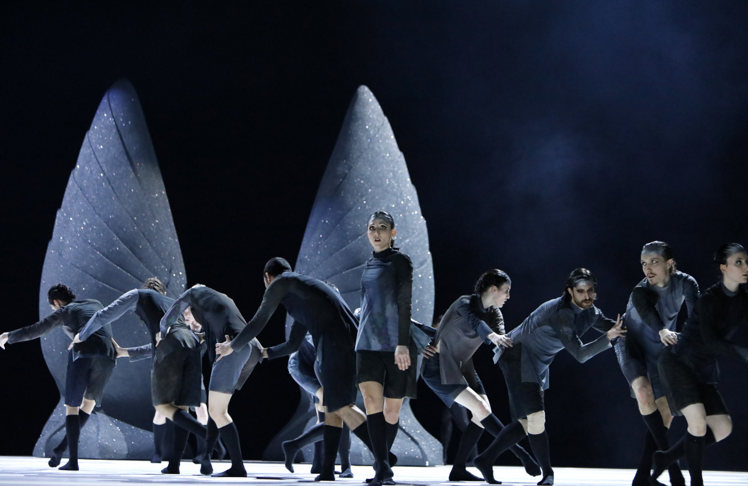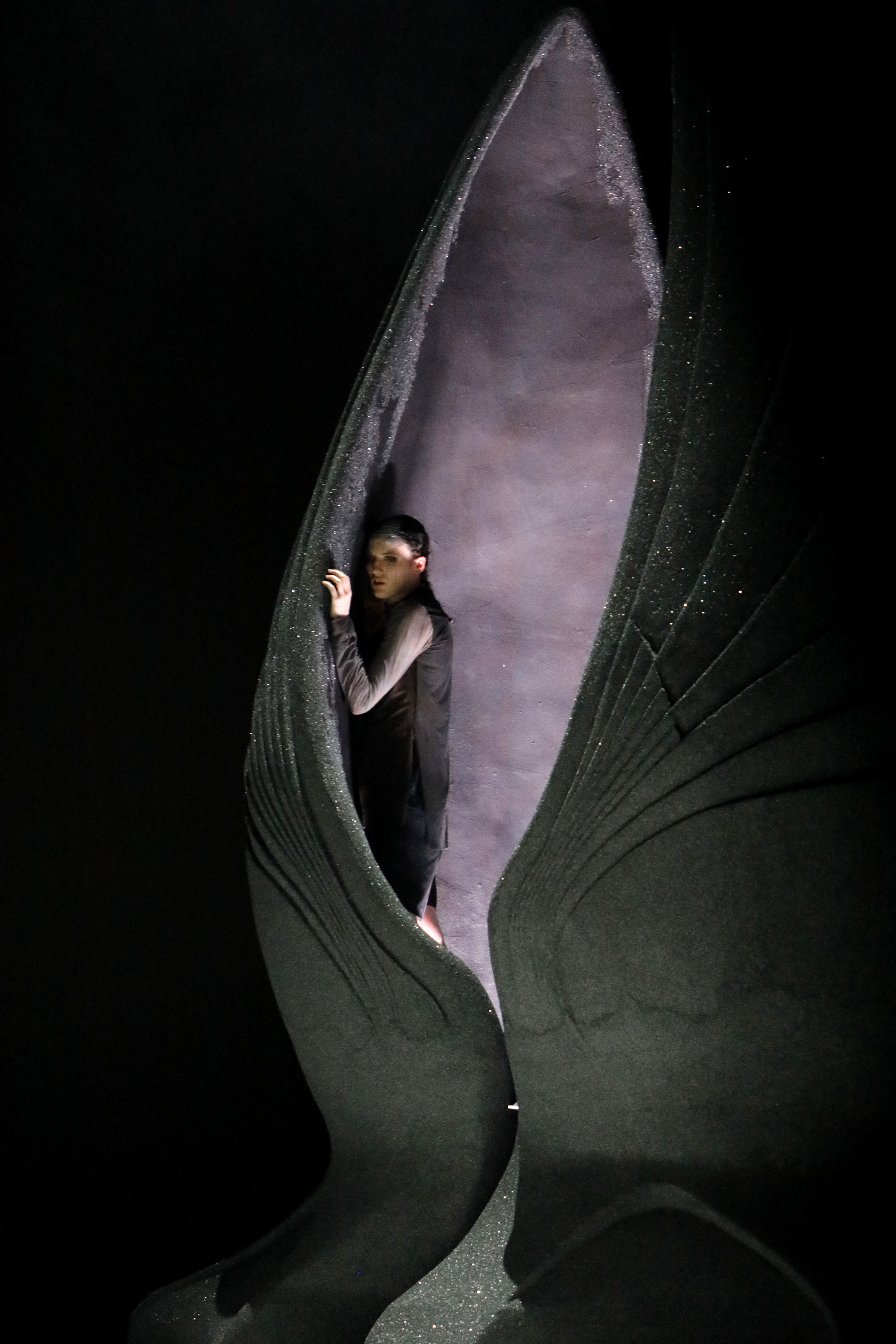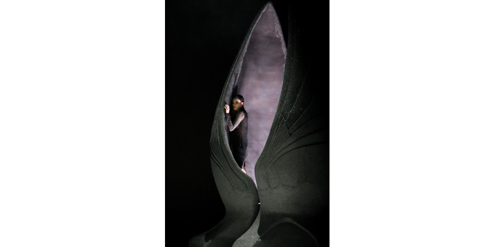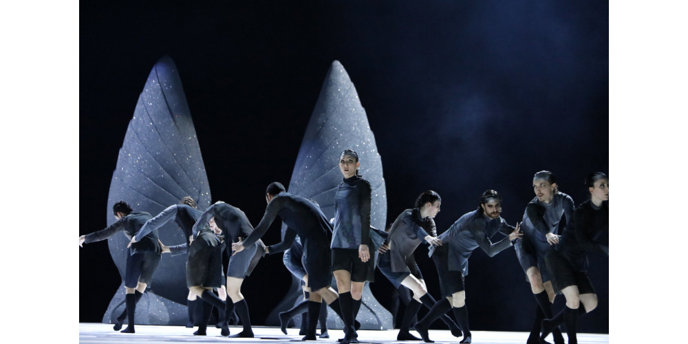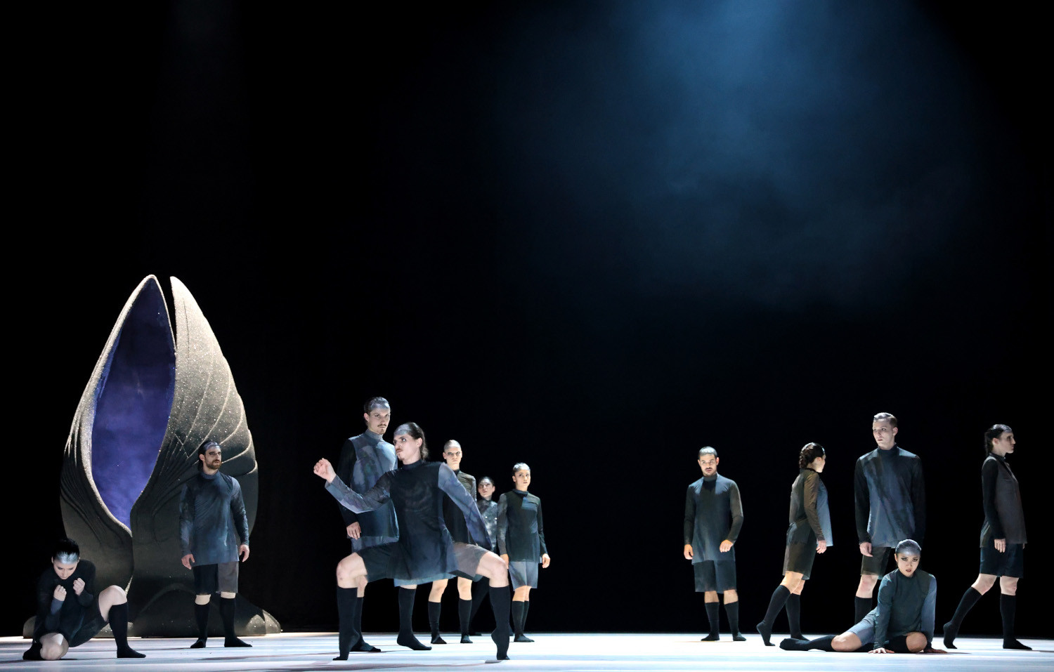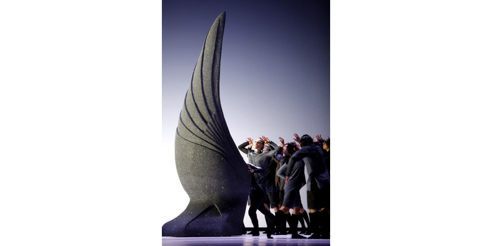 Zitat aus dem Programmheft: „Der Stein, bereits in archaischer Zeit zentrales Objekt ritueller Handlungen, bildet hier das physische Zentrum der Handlungen und Kräfte, das die Menschen im Ritual begleitet.“