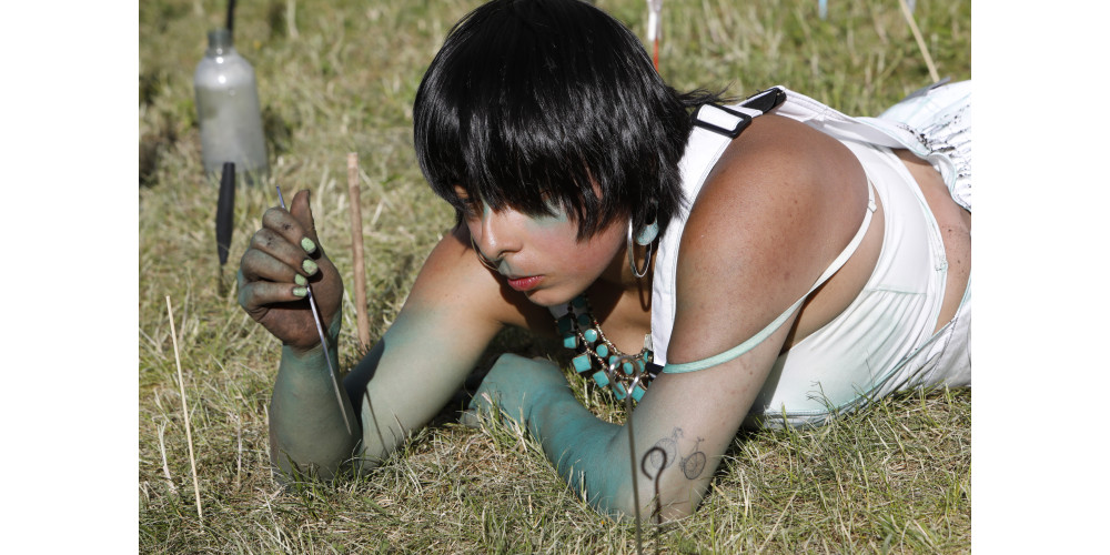 Für drei Tage lang wurde das SANAA-Gebäude mit seiner markanten Fassade direkt vor den Toren der Zeche Zollverein in Essen zur Spielfläche. Jeweils sechs Stunden lang zeigten 15 Studierende der Folkwang-Uni Ergebnisse des Workshops „Black Ritual and Duration Action“. Ihre Performance „Restless Sanctuaries“ zeigt das Verhältnis zwischen Körper und Raum.