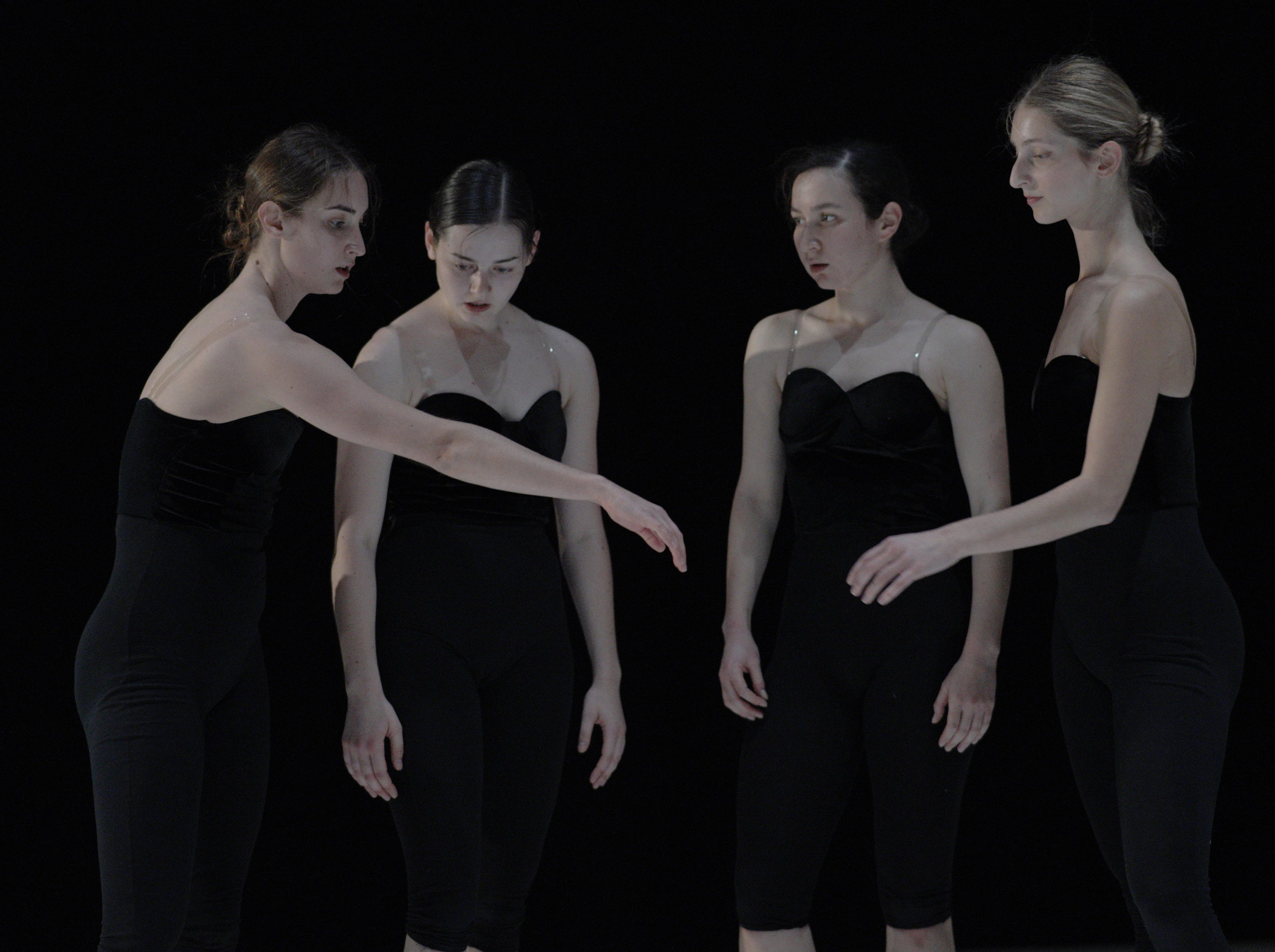 Der Abend kommt als lockere Nummernrevue einher, eingerahmt von einer Sequenz, in der die Tänzerinnen ein unsichtbares Etwas zwischen ihren Händen teilen, umsorgen, fallenlassen und wieder aufheben, in einer immer gleichen Abfolge – die mit genauem Gespür für Timing durchbrochen wird. Dieses „Unsichtbare“, so erzählt es Roy Assaf im Gespräch, ist in den Proben als letztes dazugekommen und hat immer mehr an Gewicht gewonnen. Er kommt nie mit einem fertigen Plan ins Studio, sondern erarbeitet seine Stücke immer mit den Tänzerinnen und Tänzern zusammen.
