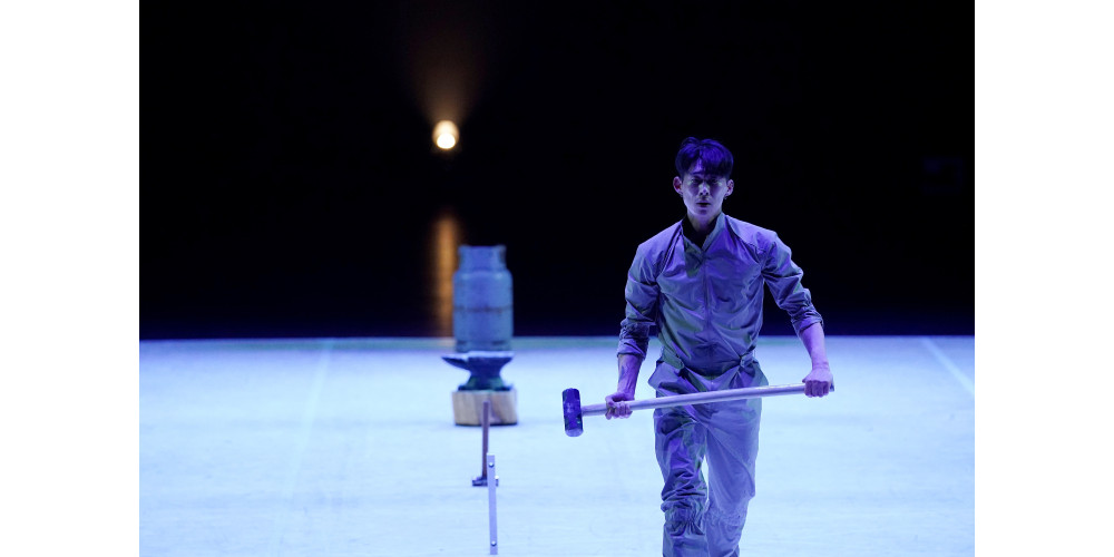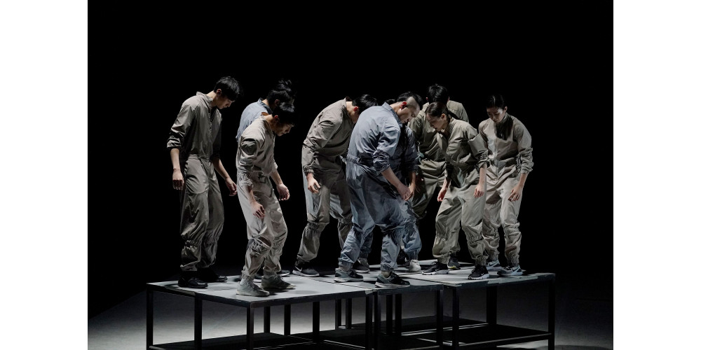 Perfektionistisch erscheint im Gegenteil „Homo Faber – The Origin“ des koreanischen Choreografen Kyoung Shin Kim für seine Company Unplugged Bodies. Auf der Bühne stehen große Schachteln in Reih und Glied. Noch während das Publikum Platz nimmt, ist ein Tänzer damit beschäftigt, die Anordnung zu kontrollieren und leicht zu verändern. Am Beginn müssen die neun Tänzer*innen ihr Überleben sichern. In den Kartons entdecken sie Werkzeuge, sie beginnen mit der Herstellung von Maschinen. Doch das Fließband wird schneller und schneller, die Menschen müssen sich den Maschinen anpassen.