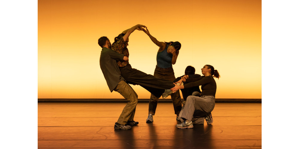 Fünf Tänzer*innen, darunter Mattis selbst, sprechen während der knapp 90-minütigen Performance Textausschnitte. Die vollständigen Texte liegen als Booklet zum Nachlesen auf den Sitzen auf. Matis hat eine spannende Bewegungssprache entwickelt: Impulse fließen leicht stockend durch den Körper. Wie Wasser, das nicht mehr frei fließen kann, weil es künstlich reguliert wird. Vor allem am Anfang wirken die Tänzer*innen entwurzelt, suchen noch ihren Platz auf dieser Welt. Dabei bleiben sie auch in den Gruppenszenen einander eher fremd und distanziert, scheinen keine Verbindung mehr aufbauen zu können. Für das gleichzeitig roh und verletzlich wirkende Stück gibt es am Ende viel Applaus.
