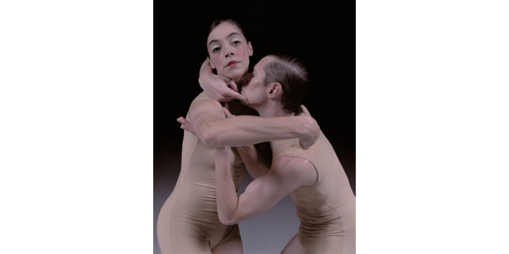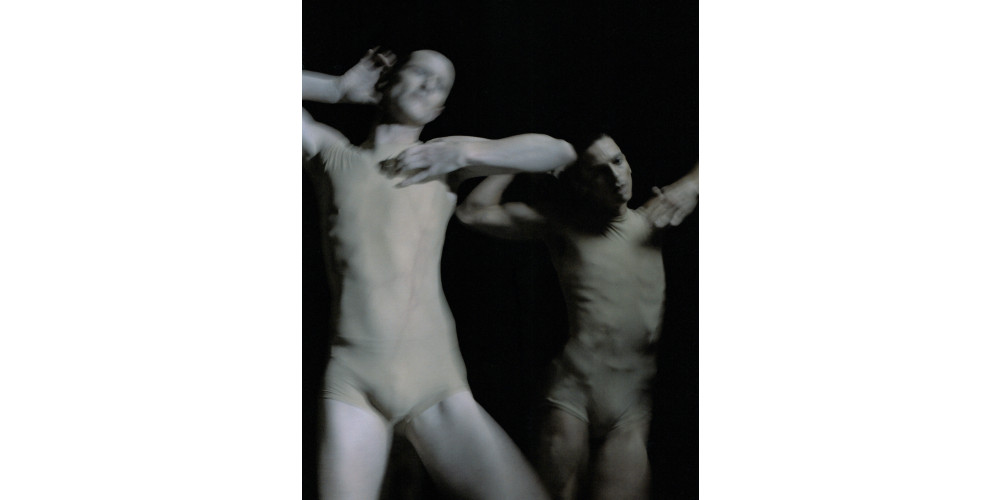 Ein Tänzer-Paar wie zum Kuss aneinandergestellt, ein Tänzer-Paar mit weit aufgerissenem, stumm schreiendem Mund. Rundherum Finsternis. „Delay the Sadness“. Verschieb das Traurigsein (über den Tod der Mutter). Dröhn es zu. Das aber gräbt sich ein wie mit einem Meißel, vielleicht für immer.