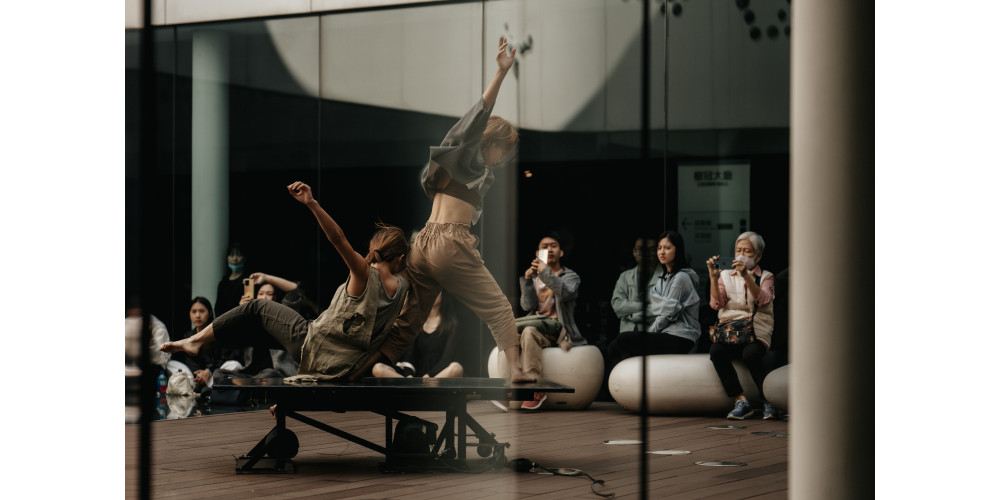 People, including those who may never have come into contact with contemporary dance before, can stroll through the centre and marvel at the Resident Island Dance Theatre's ‘In Factory’ in a glass box stage in Crown Hall, for example. Choreographer CHANG Chung-an places his dancers on moving platforms on which they work against the imbalance of mechanical forces. As their bodies interact with the dynamic movements of the machines, unpredictable choreographic interactions are created that keep the audience glued to the glass box until the end of the performance. At the same venue the following day, CHEN Chu-chun, the youngest choreographer on the platform, who was born into a family of potters in Hsinchu, shows excerpts from ‘A Journey of Rokuro’. Here she places her dancers on an oversized potter's wheel - inspired by Japanese traditions, where CHEN observed potters at work on traditional foot-operated rokuros.