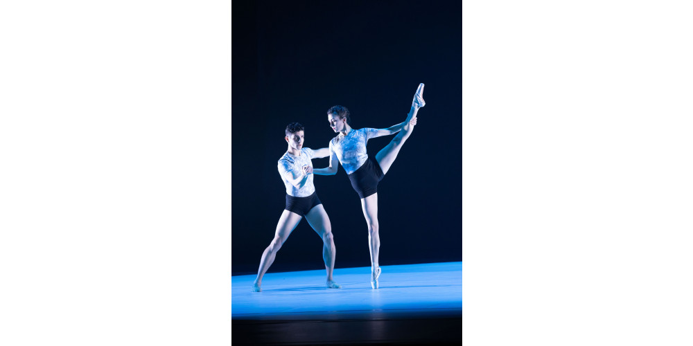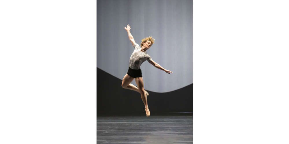 Den Schlusspunkt mit seiner Company choreografiert Giannetti selbst. Grundlage ist ein pulsierend elektronischer Soundtrack von Alva Noto, der mit „Hybr:ID I“ das titelgebende 25-minütige Stück beisteuert. In grau befleckten, flirrenden Kostümen, die alles ein wenig wie digital verschwommen wirken lassen, gibt es hier Zeitgenössisches auf Spitze. Am Anfang pulsiert es ordentlich, zwei Tänzer*innen stehen wie verwachsen auf der Bühne, schälen sich auseinander heraus.