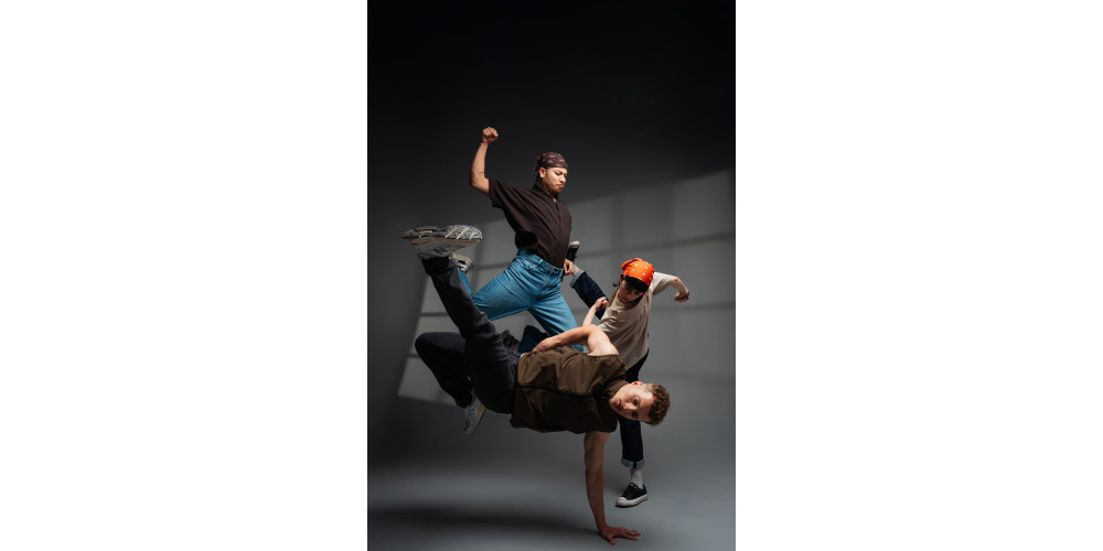 „Tie Break“ bedient sich dem Prinzip des Tanzbattles, um vielseitige Bilder innerer und äußerer Kämpfe zu produzieren. Die Tänzer*innen Victor Karwath, Marino Ariza und Alanna Reimpell Bravo konfrontieren sich in ständig wechselnden 2:1-Konstellationen – mal spielerisch, mal provokativ herausfordernd, manchmal auch bedrohlich. Zwei von ihnen beobachten, kommentieren gestisch und mimisch das, was die dritte Person für sie (oder auch für sich?) tanzt – ein energetischer Mix aus Breakdance, Popping, zeitgenössischen und lateinamerikanischen Einflüssen. Bis zur Erschöpfung verausgabt sich da z.B. Alanna Reimpell Bravo – in ihrem Gesicht zeichnet sich der Druck auf eine ganze Generation zwischen Leistungsdruck, Zukunftsängsten und Weltschmerz ab. Ein rechteckiger Metallrahmen wird auf Rollen durch den Raum der P1 bewegt und erinnert als durchsichtige Spiegelwand zunächst an den Selbstdarstellungswahn im digitalen Raum, später aber, wenn die drei Tänzer*innen nun spielerischer durch ihn hindurch springen, symbolisiert er auch die Befreiung von derartigen Zwänge.