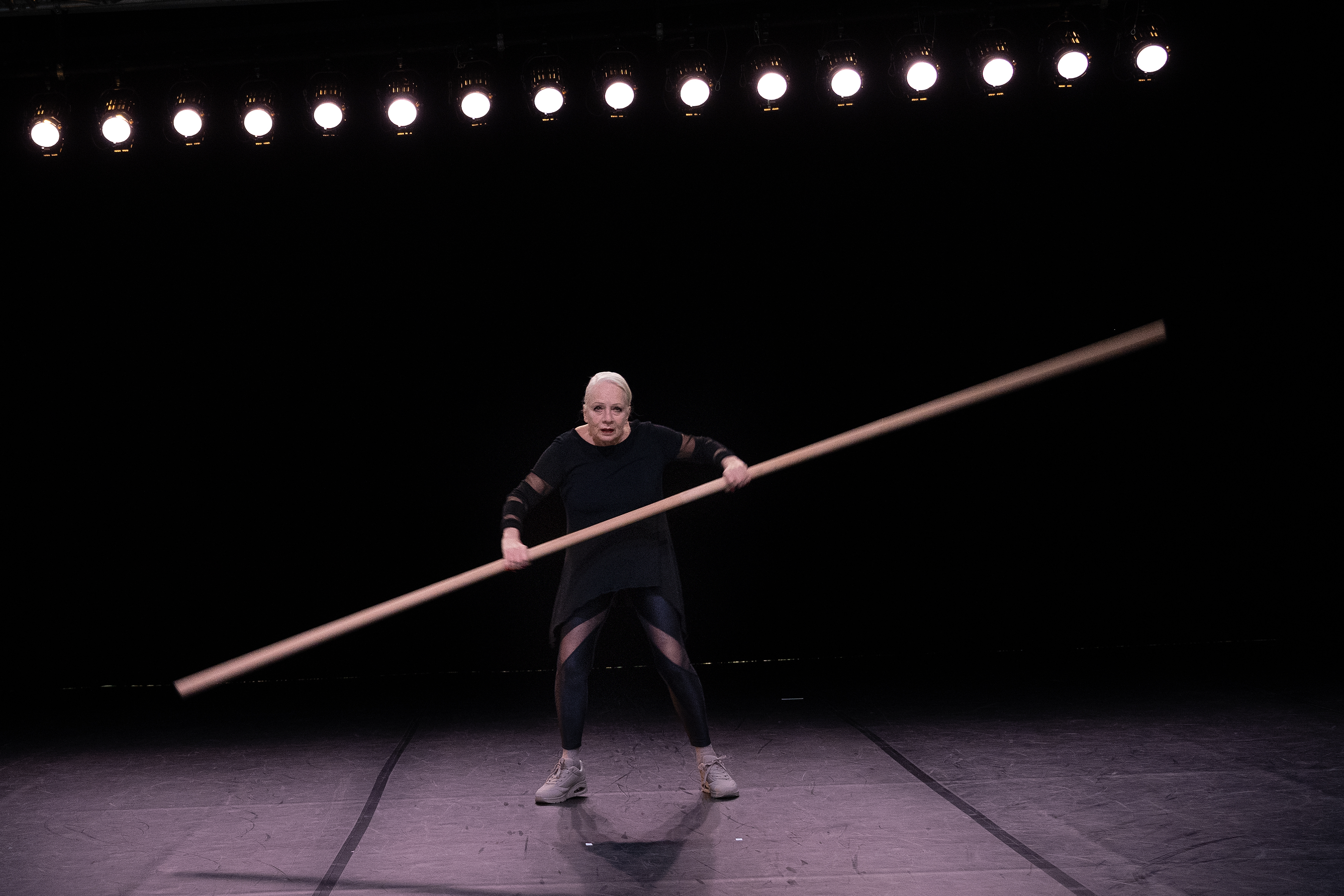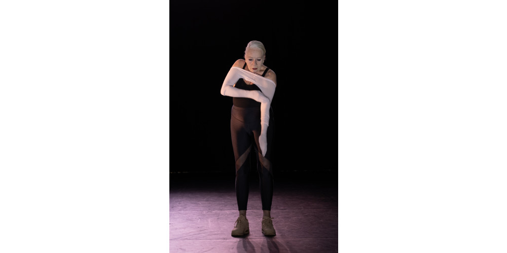 Wie in den beiden Produktionen davor, „SPITZE“ (2008) und „Come Back“ (2012), schwebt auch dieses Mal die Auseinandersetzung mit dem perfektionistischen Anspruch an die Leistungs- und Leidens-, aber auch die Erinnerungsfähigkeit einer klassischen Tänzerin durch den großen, schwarzen Bühnen-Raum. Sie schwebt tatsächlich, denn Susanne Kirnbauer lenkt, selbst sitzend, den Blick auf ihre behenden Fußspitzen in Sneakers. Ein Spot wirft Licht auf ihre weißen Arme, die sich biegsam zu Beinen formen und verformen. Sie deutet ein Springen an, bleibt aber immer in ihrer unmittelbaren Gegenwart als Frau heute. Das rührt und berührt, ohne mitleidiges Lächeln. Über ein lautes erleichterndes Seufzen von Kirnbauer, nach all dem Show-Können, aber lacht man mit ihr von Herzen. Man mag Lebenseinsichten an solchen Szenen messen, die immer noch eine Zukunft verheißen. Denn das Wort Altern, oder besser älter werden, kümmert alle.