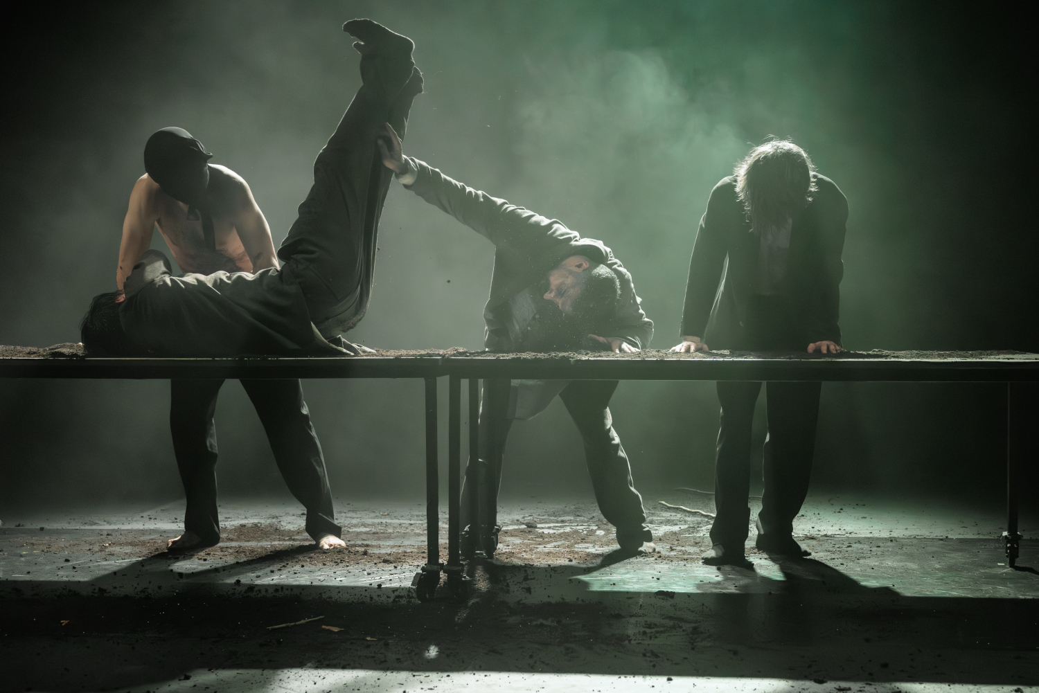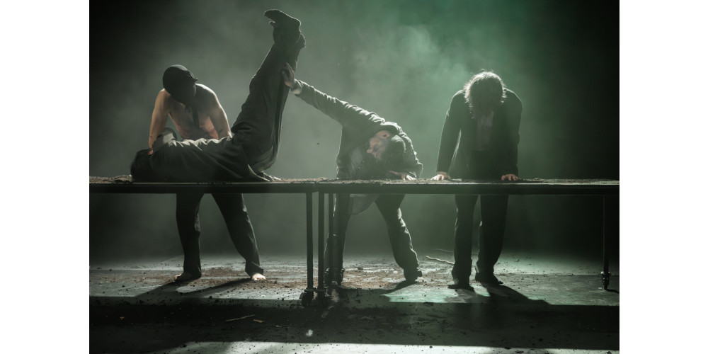 Davon wusste Yasit allerdings nichts. Stattdessen greifen seine Sequenzen zurück auf autobiografische Bruchstücke, Erinnerungen der Tänzer*innen und verschiedenste kulturelle Impulse. Akustisch überlegt Yasit hier beispielsweise georgische Gesänge mit kurdischer Musik, die seinen Wurzeln nahekommt. Spätestens, wenn Granatäpfel auf der Bühne auftauchen, erhebt sich die Stimmung ins Religiöse, bekommt fast Züge von Ikonenmalerei. Wie zum letzten Abendmahl kommen alle an der langen Tafel zusammen. Dabei war es Yasits Großmutter, wie er verrät, die mit dem Öffnen eines Granatapfels immer wieder die Familie zusammenzubringen wusste.