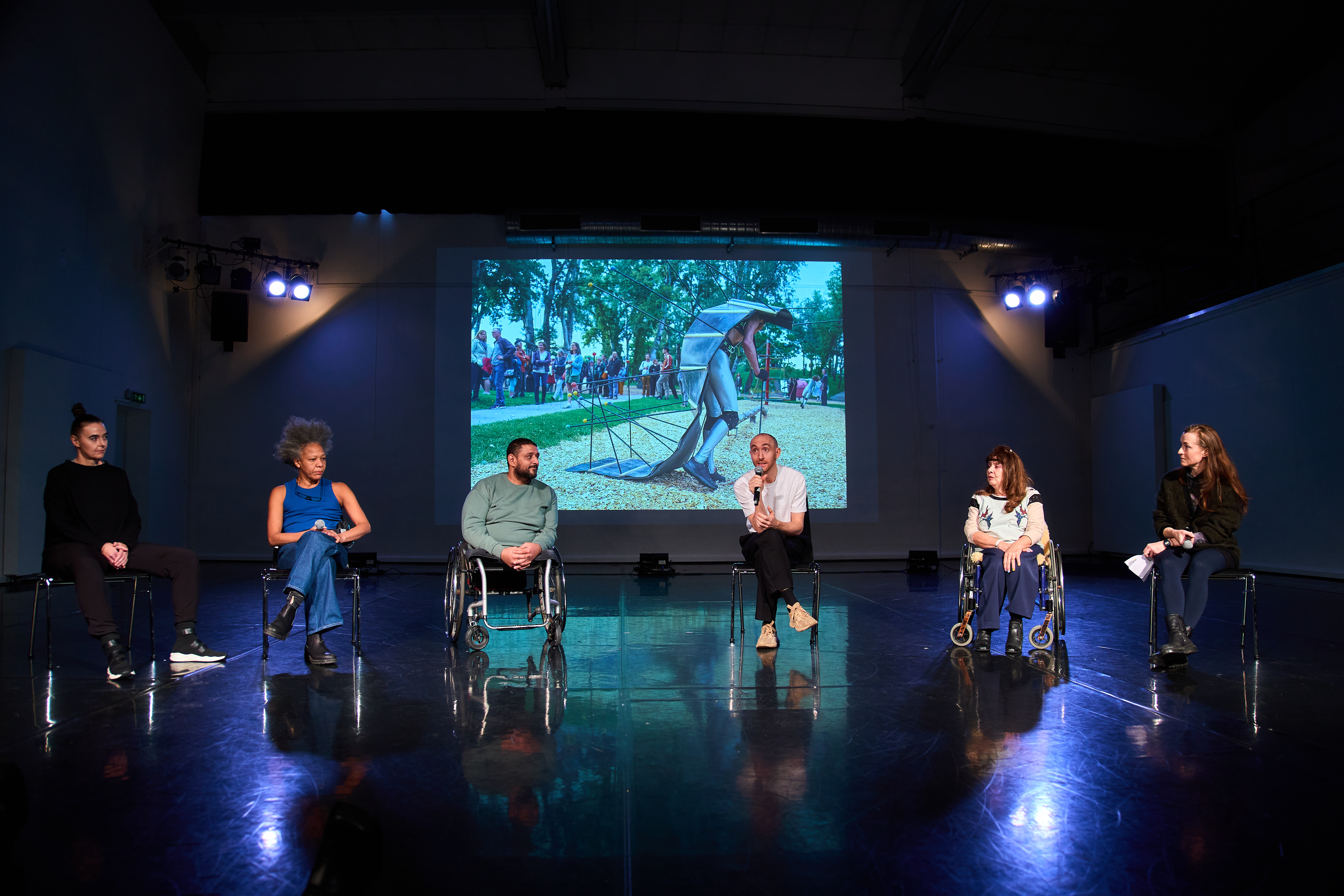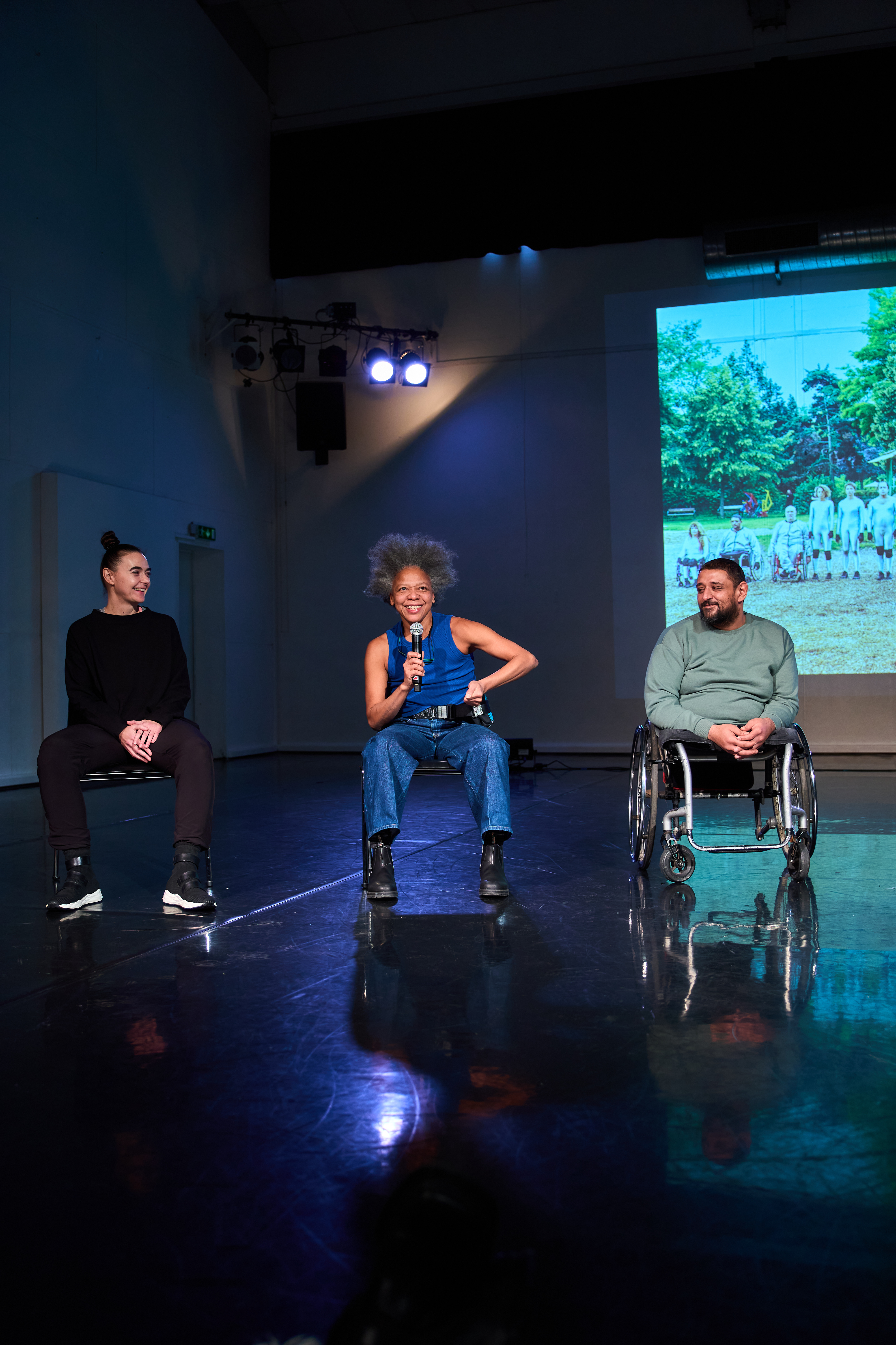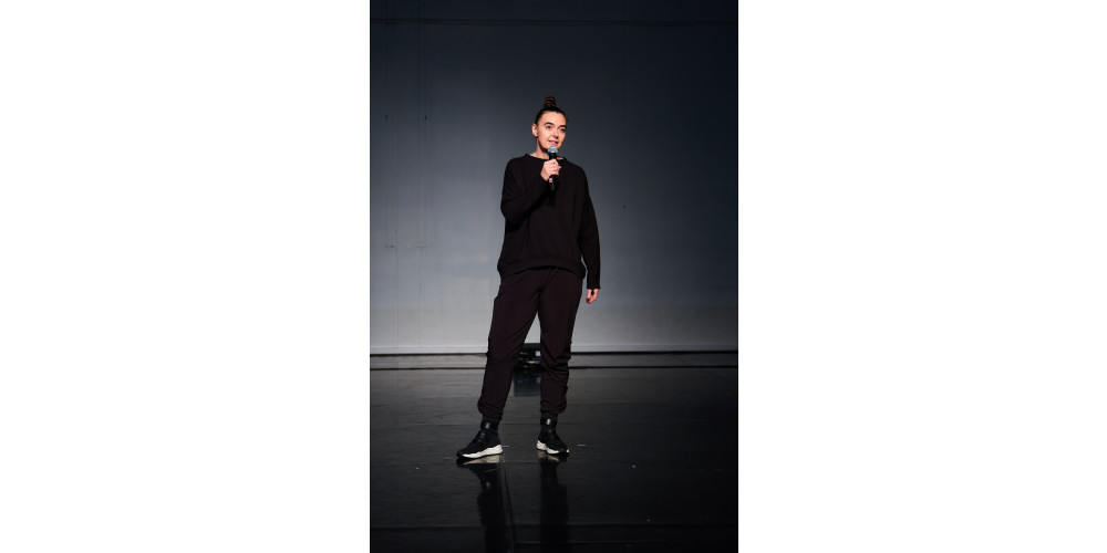 Doris Uhlich gave a short presentation about melancholic ground followed by a 12-minute video of the 2023 performance at the Wiener Festwochen. And an interview with four of the original cast members: Hugo Le Brigand, Adil Embaby, Moravia Naranjo, and Vera Rosner.