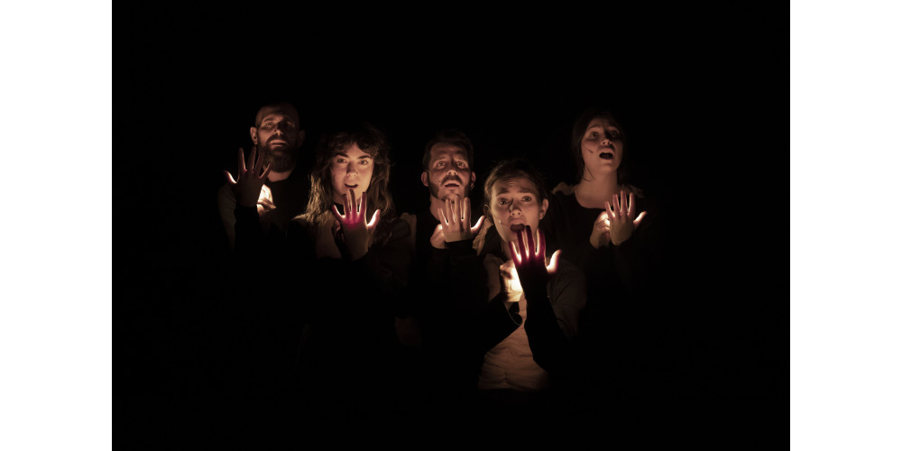 „A BEGINNING #16161D“ stammt aus der Feder des spanischen Künstlerduos Aurora Bauzà und Pere Jou, das die menschliche Stimme in den Mittelpunkt ihres künstlerischen Schaffens stellt. Während sich Bauzà für Regie und Musik verantwortlich zeigt, erarbeitete Jou die Choreografie und steht als einer der fünf Performer*innen auf der Bühne. Choreografie ist an diesem Abend eher im übertragenen Sinne zu verstehen – v.a. bewegen sich die Lichtbalken oder die kleinen Leuchten, die die an den Handflächen der Performer*innen kleben und mit denen sie entrückt-schemenhafte Gestalten und Bilder kreieren können. Und diese Lichtbilder, gepaart mit den sehr sakral anmutenden Choralgesängen, schaffen v.a. vor dem inneren Auge des Publikums ein Gefühl von Bewegung, von Tanz.