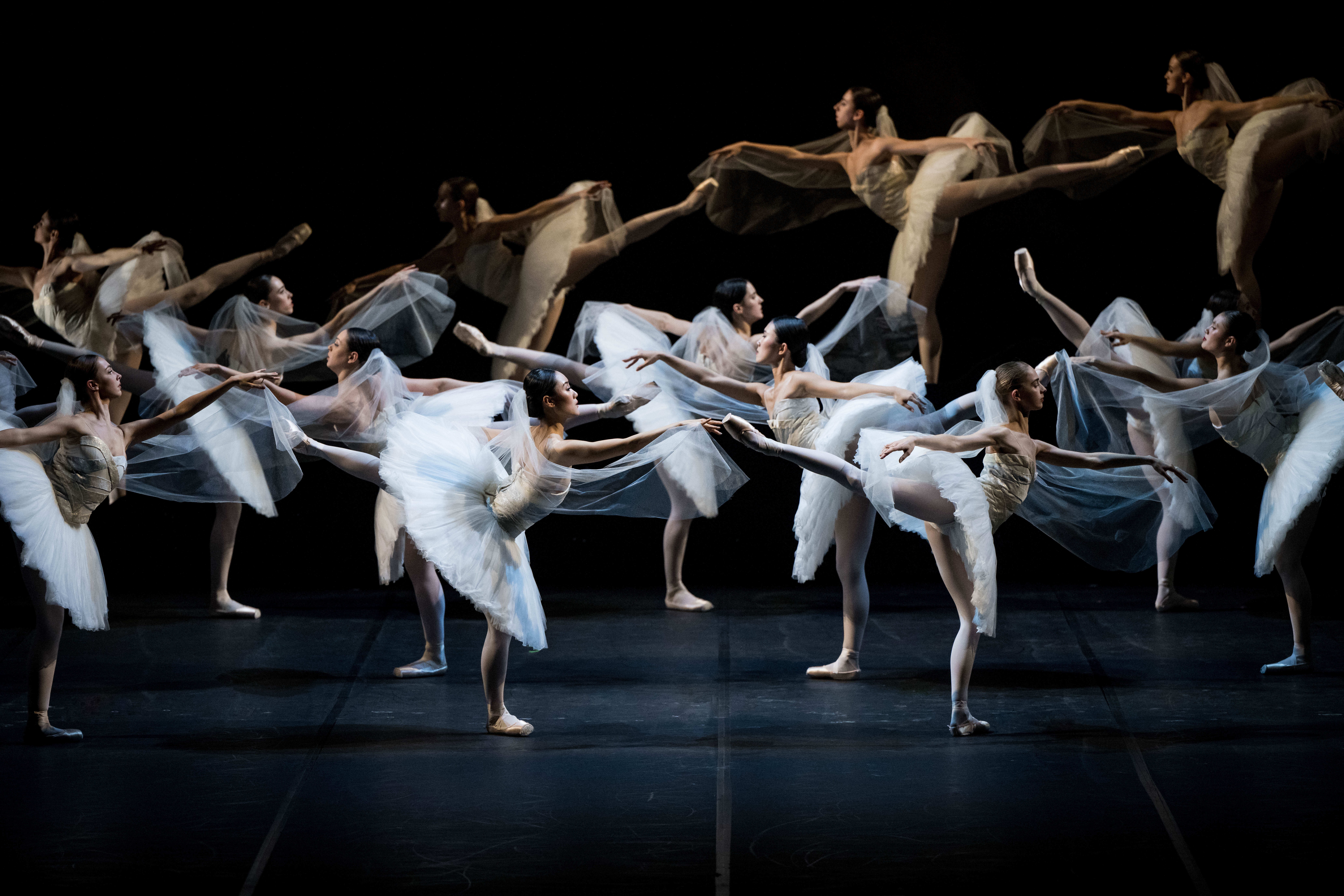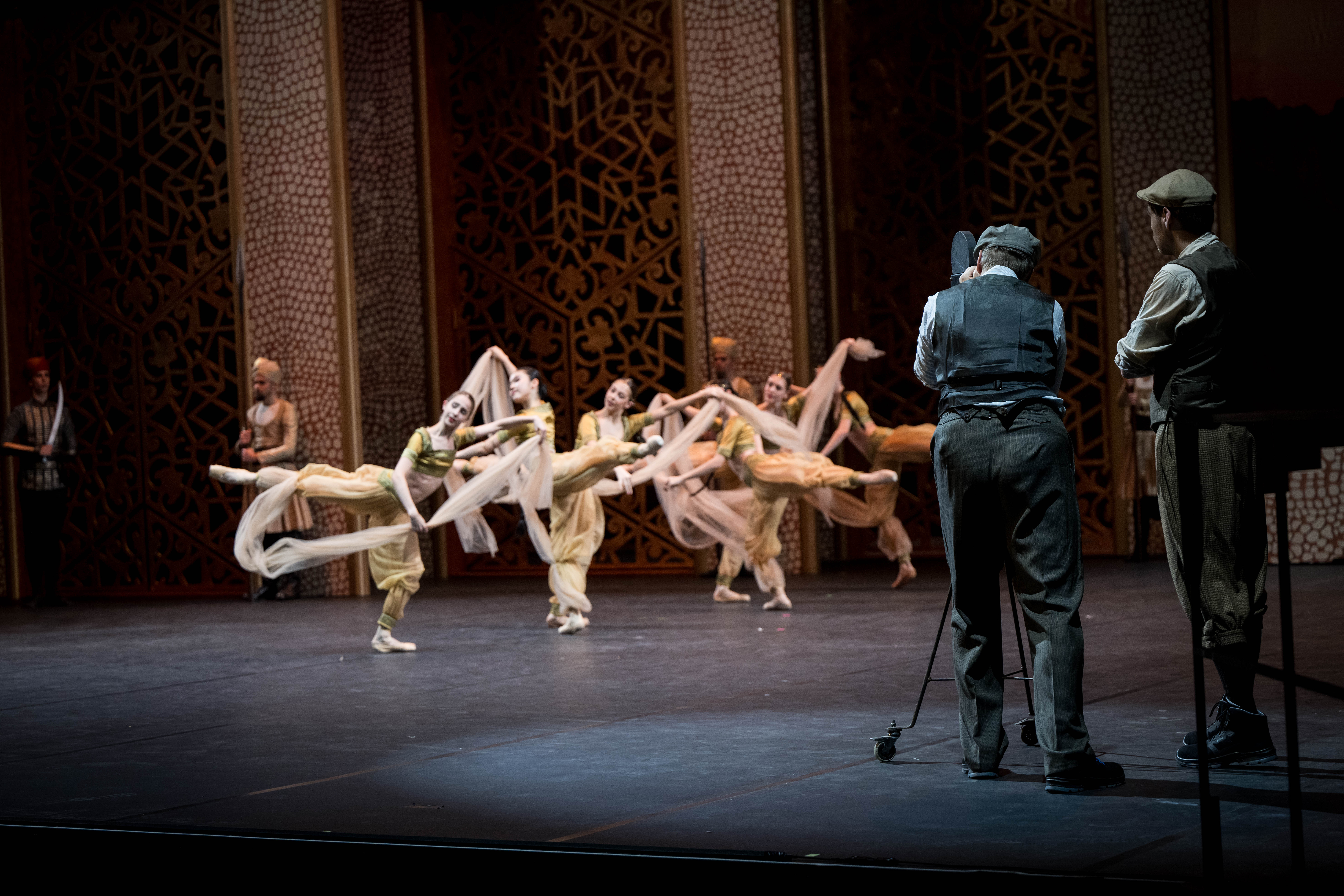 Am Set der Dreharbeiten wiederholt sich diese Geschichte 1:1 zwischen den Hauptdarstellern. Auch choreografisch nutzt Wang einen Rahmen, indem er sich im 2. und 3. Akt an Petipas Vorlage orientiert und als Klammer den 1. und 4. Akt eigenständig choreografiert. Dafür nutzt er eine klare, offene Formensprache, die nichts verklausuliert, dadurch seinen Solist*innen aber desto mehr an Technik abverlangt. Und die liefern! Dem Anlass entsprechend tanzt hier noch einmal die Premierenbesetzung.