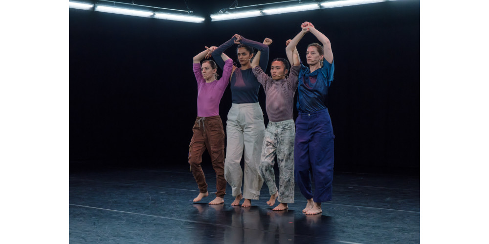 Zur Verleihungsfeier am 8. Oktober sind getanzte Ausschnitte aus „Radical Cheerleading“ auf der Bühne zu sehen – dank einer mehrminütigen Filmeinspielung, in der jeweils kurze Passagen und Kernmomente aus verschiedenen Werken chronologisch wie Trailer aufeinanderfolgend sich nach und nach zu einem packenden Blick auf Zufits Schaffen summieren. Das funktioniert vor allem deshalb, weil die Choreografin mit ihrem Uraufführungsteam Dorota Michalak, Sunayana Shetty und Cary Shiu zuvor 15 Minuten lang live Teile aus ihrem 2024 kreierten Stück „Bodies in Rebellion“ performt hat. Es ist eine knappe Kostprobe der Wiederaufnahme des eindrücklichen Abendfüllers im Schwere Reiter. Und allein diese Essenz hat es schon in sich.