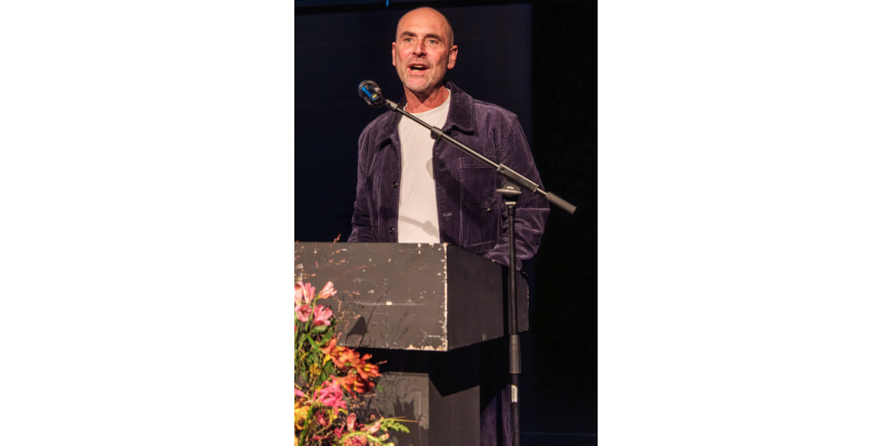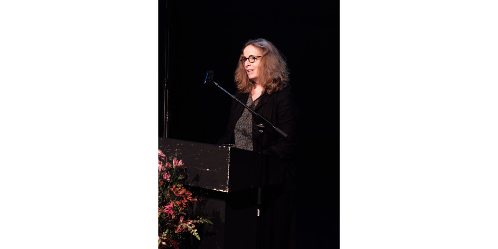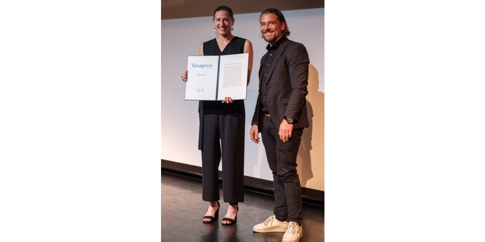 Auf den kollegialen Innenblick von Micha Purucker ließ Sabine Leucht in ihrer Laudatio einen Außenblick auf die Choreografin folgen. Einen fachkundigen Außenblick mit O-Tönen, der weniger ins Biografische oder gar Private ausholte, Anekdoten bis auf die deutsche Übersetzung von Simons Vornamen (Kolibri) aussparte und sich stattdessen ganz auf die besondere Machart der Werke sowie markante Herausstellungsmerkmale der Künstlerin und deren „Zugang zum Körper“ konzentrierte.