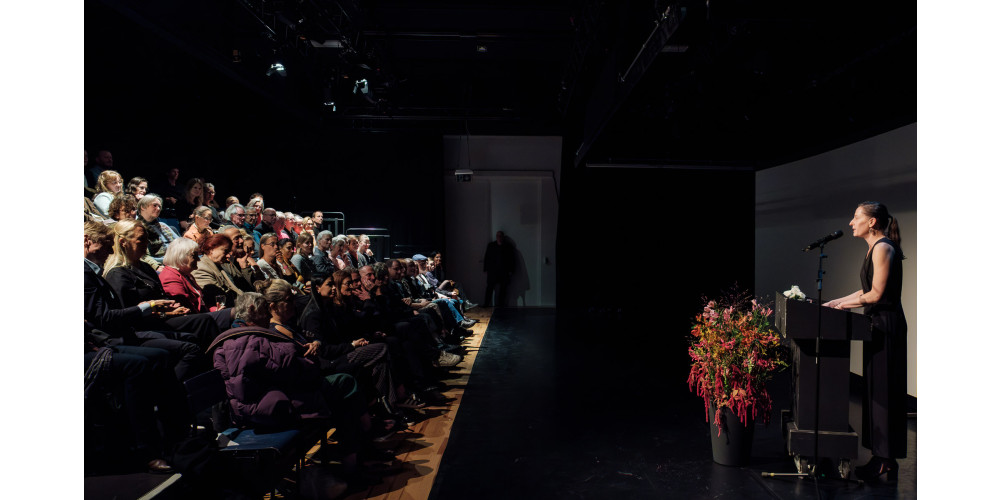 „Es ist nicht einfach, mit mir zu arbeiten“, wirft die dankbar-glückliche Preisträgerin am Ende in den Raum, als sie persönlich das Wort ergreift. „Das sage ich immer als allererstes, wenn ich neue Personen oder Tänzer kennenlerne. Ich bin kritisch; ich bin streng; ich schätze Präzision; ich kann es nicht leiden, wenn Leute zu spät sind. Ich verlange sehr viel – von mir selbst und von den anderen. Es ist nicht einfach. Und ich will immer weiter ausprobieren, forschen. Es kann auch schiefgehen, aber dieses Forschen und Ausprobieren ist für mich total wichtig.“
