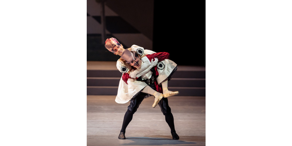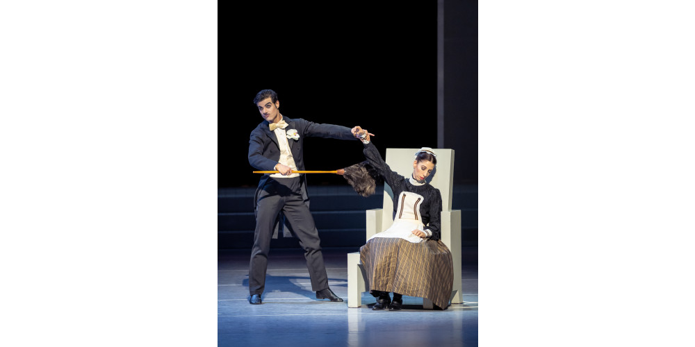 Mit der Wiederaufnahme von Roland Petits an sich kurzweilig inszenierter „Fledermaus“-Parodie in Anlehnung an die gleichnamige Strauß-Operette setzt sich diese „Berauschtheit“ nicht fort. Da schlägt auf andere, wenn auch elegante Art Altbackenes durch, das möglicherweise auch Petit mehr als 45 Jahre nach der Uraufführung geändert hätte. Beim musikalisch-dreisten „Best of“-Arrangement von Douglas Gamley (unter der musikalischen Leitung von Luciano Di Martino) beschleicht zunächst einmal subtile Strauss-Kenner*innen ein ungutes Magengefühl. Übertüncht wird dieses allerdings vom szenisch wendigen, abgekarteten, slapstickartigen Spiel eines traditionellen Gutbürger-Quartetts: dem nächtlich per Fledermaus-Flügel ausschwirrenden Ehemann Johann, der daraufhin zur umschwärmten Nachtschönheit mutierenden Hausfrau Bella, dem dabei hilfreichen Freund Ulrich, der wie geschmiert und poliert die List mitträgt, und einem unumgänglichen Dienstmädchen, das auch für Klapse herhalten muss.