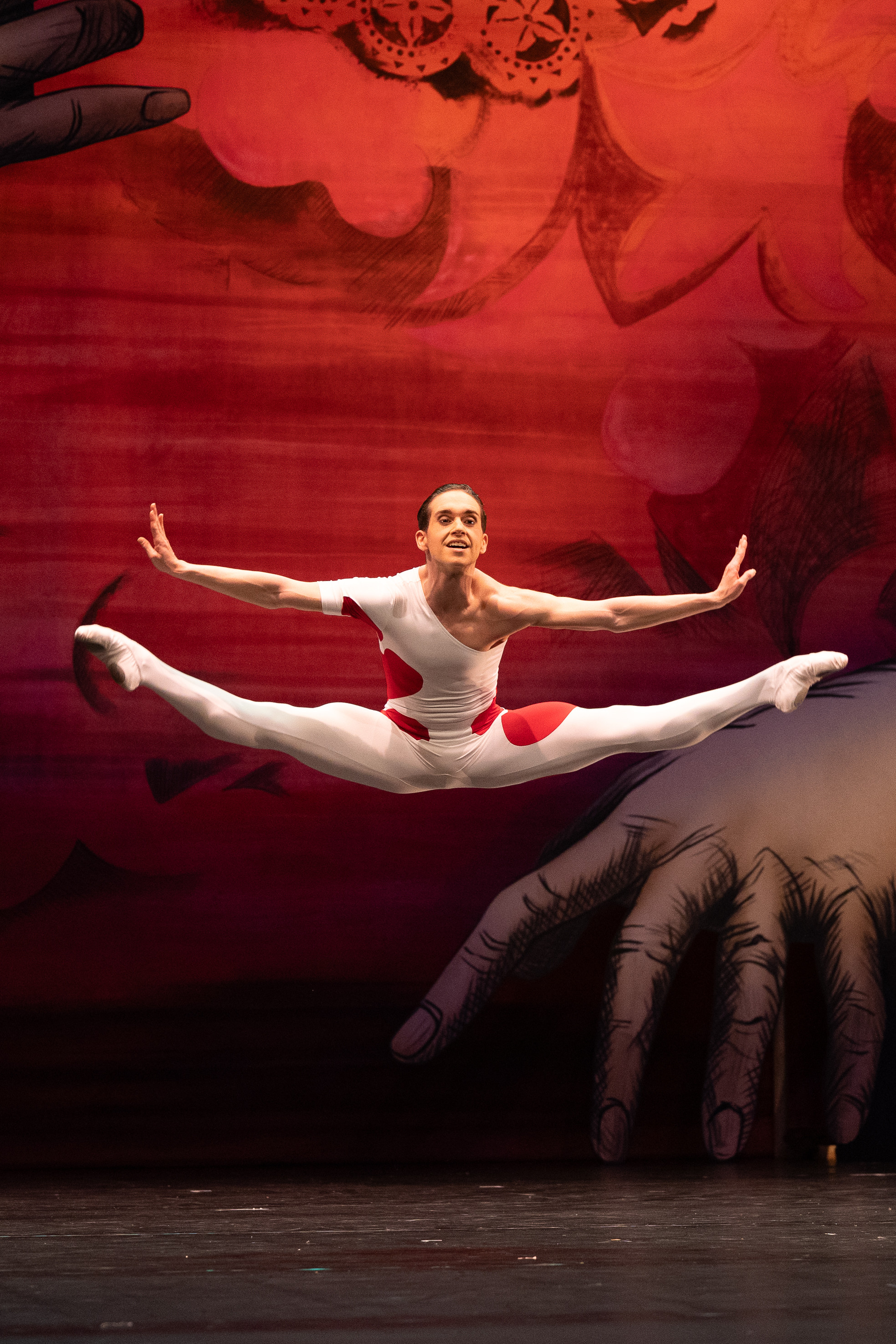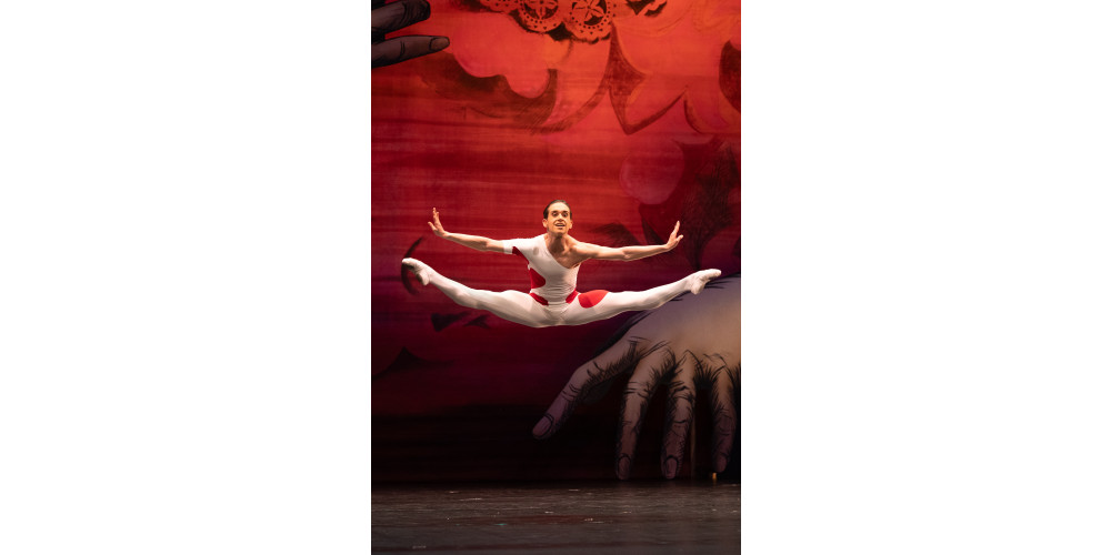 Dieser augenscheinlich kleine alberne Spaß, der „Jeu de Cartes“ ausmacht, verlangt den Tänzern technisch wirklich was ab. Und Anderson, Urgestein des „Stuttgarter Ballettwunders“ und Verwalter des Cranko-Erbes, war nach der Premiere zu Recht stolz auf die Truppe. Seit seiner Uraufführung haben zwar sowohl der Humor als auch die Kostüme ein kleines bisschen Staub angesetzt, aber Qualität bleibt Qualität: choreografisch funktioniert „Jeu de Cartes“ noch immer. In drei Runden werden in diesem Spiel die Karten und damit die Tänzer*innen immer neu gemischt, wobei der Joker jedes Mal eine andere Rolle spielt. Und im zweiten Satz eben gar keine. Daher sein Rausschmiss. Was der, wiederum, so nicht auf sich sitzen lässt. Das alles als „einfachen Spaß“ überzeugend hinzukriegen, ist auf der leeren Bühne eine echte Herausforderung. Die Tänzer*innen „hingen“ zur Premiere stellenweise zwar sichtbar am Takt, aber das verändert sich mit Sicherheit im Lauf der weiteren Vorstellungen.