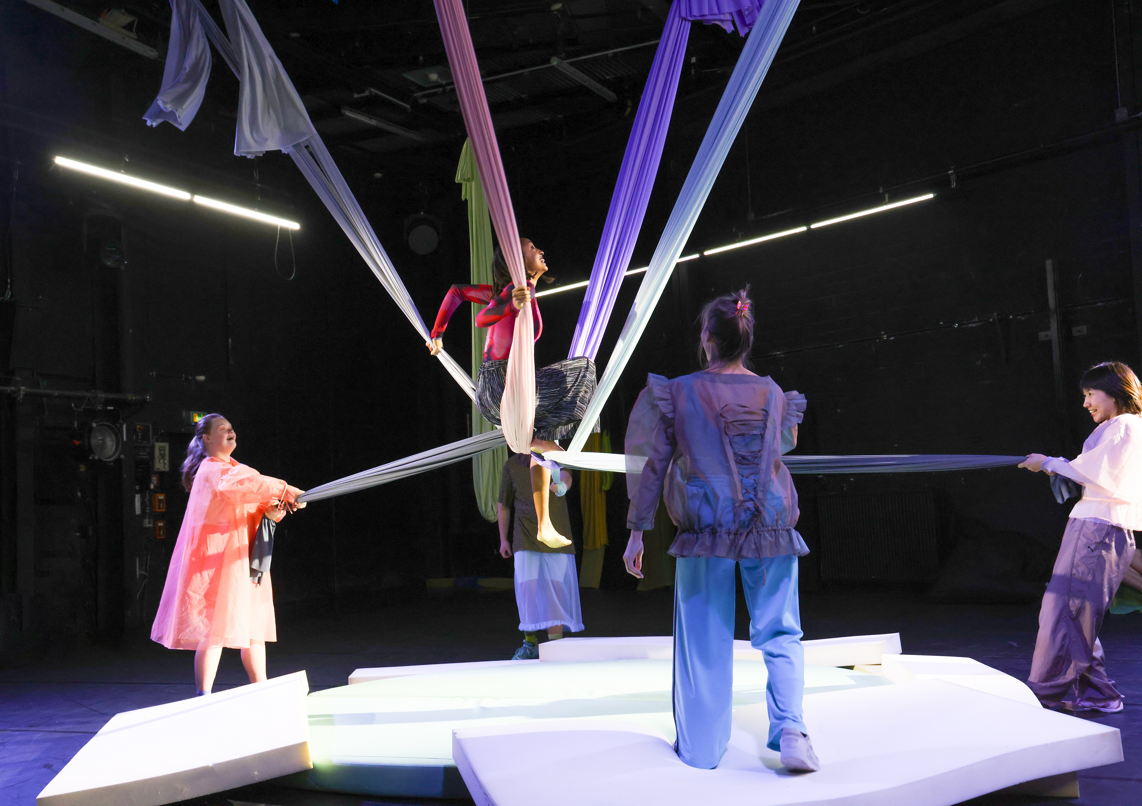 Bunte Tücher, ein paar Schaumstoffmatten, eine Rutsche: Wenige Requisiten genügen der Company Unusual Symptoms, um ein Hoch auf den menschlichen Körper und seine Bewegungsmöglichkeiten zu singen. „The Tide“ heißt das Stück, mit dem die elfköpfige, farbenfroh gekleidete Tanzcompany des Theaters Bremen vor anderthalb Wochen „EveryBody“, das inklusive Nürnberger Festival für Tanz und Performance, eröffnet hat: Mit einer Flut an Ideen, herrlich spielerisch, humorvoll und frech. Die von der Decke herabhängenden Tücher dienen wahlweise als Schaukel, als Hängematte, als Versteck. Im Verlauf der abendfüllenden Aufführung stopfen sich die Tänzer*innen die Matten, die bis dahin Sturzschutz waren, unter die Kleidung und wackeln entengleich über die Bühne, hüpfen ins Publikum und irritierten es ziemlich, indem sie über die Lehnen kugeln oder mit breitem Grinsen provokativ fragen: „Na, Schnecke, wie geht’s?“ Ein Running Gag, bei dem irgendwann die Zuschauer begannen, sich im übertragenen Sinn vor Lachen zu kugeln.