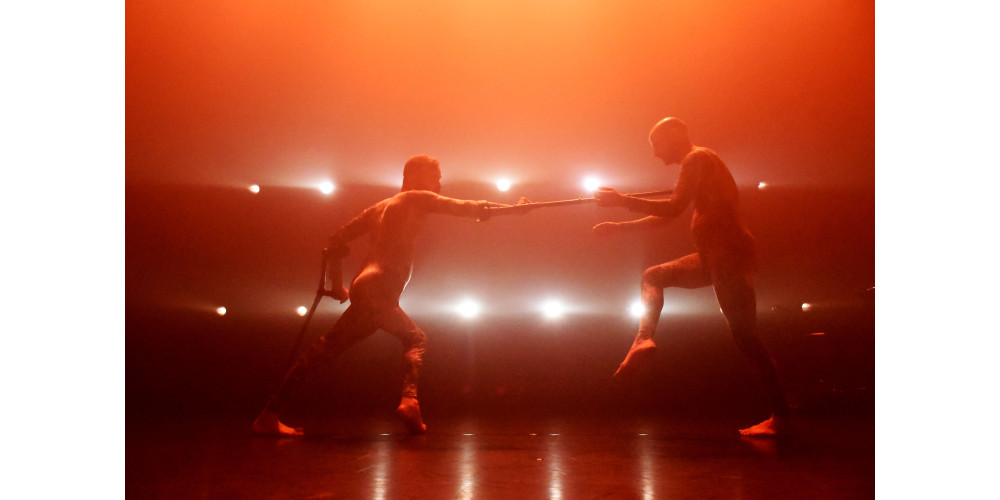 Richard Siegal, der neue Ballettdirektor am Staatstheater Nürnberg, verwies in den vielen öffentlichen Gesprächsrunden, die er seit Amtsantritt veranstaltet hat, immer wieder darauf, dass er den Spitzenschuh als „analoge Technologie“ begreift, die die Motorik seiner Trägerinnen gleichermaßen einschränkt wie erweitert. Genauso sind auch die Gehhilfen zu verstehen, die der eingeschränkte israelische Tänzer Shmuel Dvir Cohen in dem Tanzstück „Go Figure“ der vielfach preisgekrönten Sharon Fridman Company einsetzt, um mit seinem Gegenüber Tomer Navot ein Duett aufzuführen, in dem es viel um das Gleichgewicht der Kräfte geht. Die Gehhilfen dienen hier zum Ziehen, Stoßen oder als Stützen, um sich in die Luft zu schwingen, ehe die beiden Performer immer mehr zu einer beeindruckenden Körperskulptur verschmelzen.