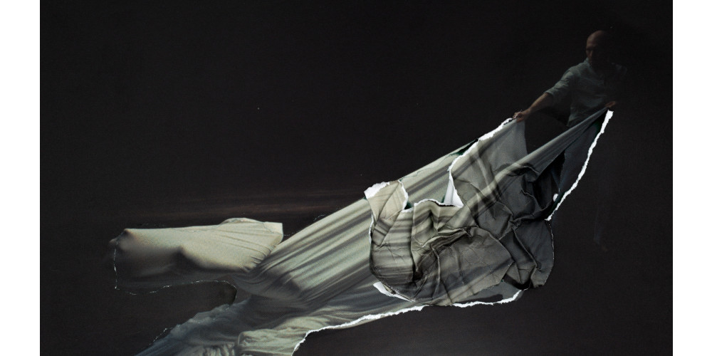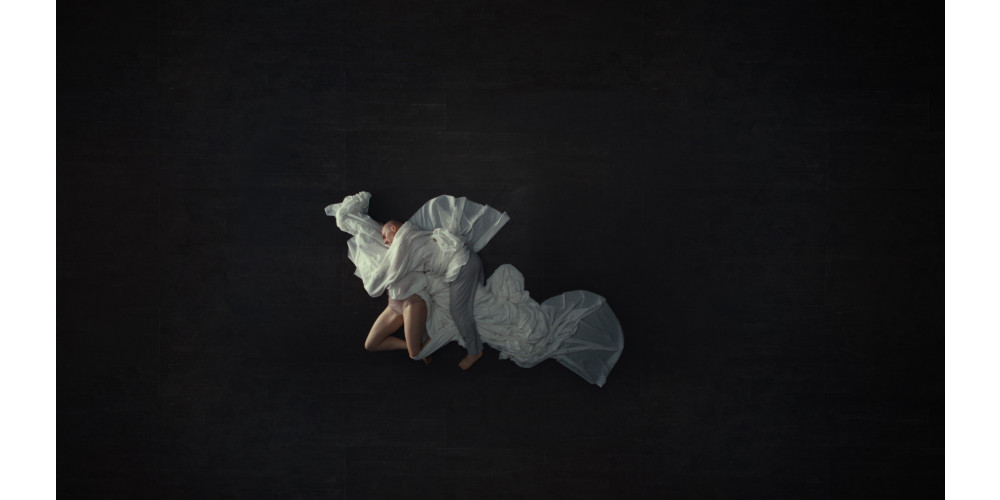Unter weißen Laken winden und kriechen zwei Menschen. Die elektronische Musik wird leiser. Sandra Hüller beginnt, die fiktive Geschichte einer Frau zu erzählen, die auf den realen Erlebnissen von vier Opfern basiert.