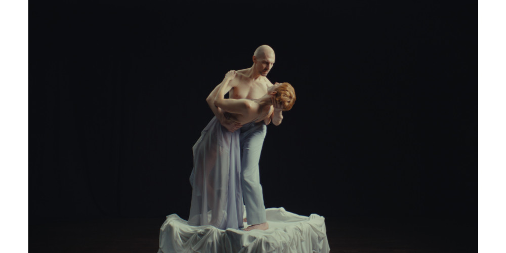 Während Hüller eindringlich erzählt, begleiten zwei Tanzende – Gesa Holland und Damian Gmür – die berichteten Erlebnisse. Der Tänzer umklammert und bedrängt die Tänzerin, die sich zu befreien sucht. Beide winden sich ineinander, lösen sich, stoßen sich ab. Später werden die Bewegungen heftiger: sie drehen sich, reißen und zerren aneinander. Immer wieder gibt es aber auch Momente der Nähe und Zärtlichkeit.