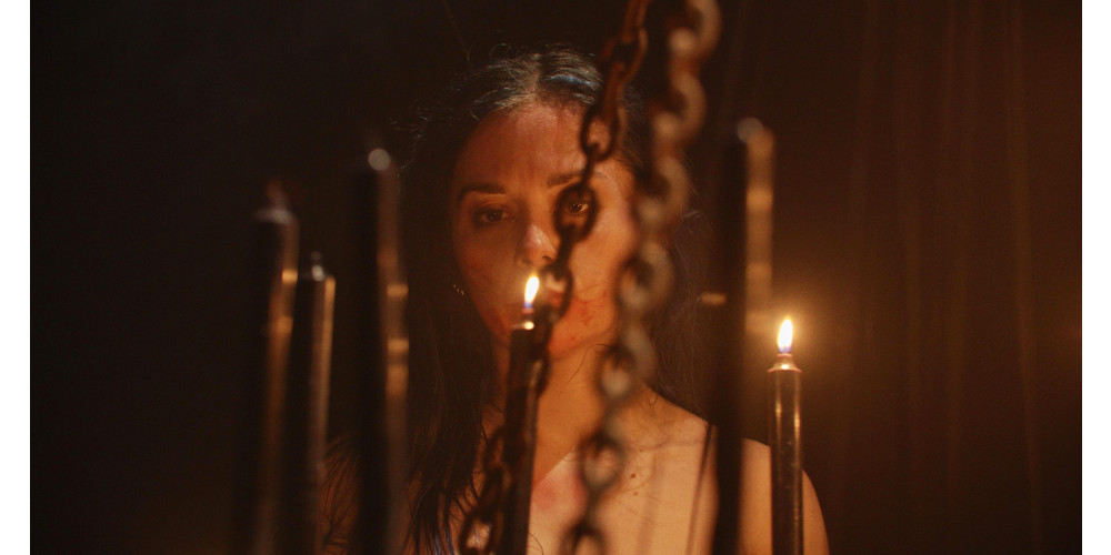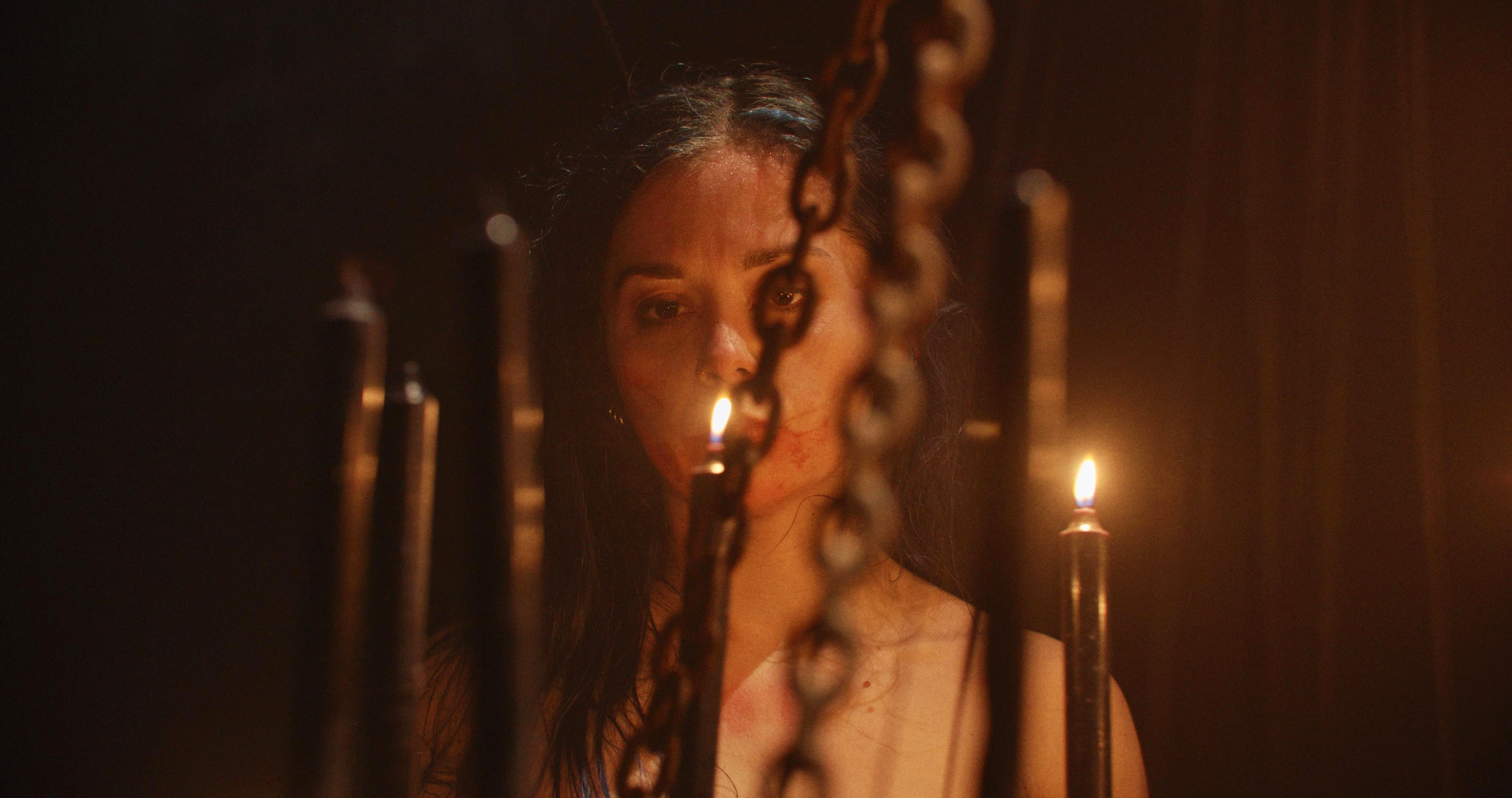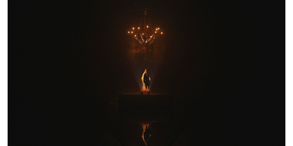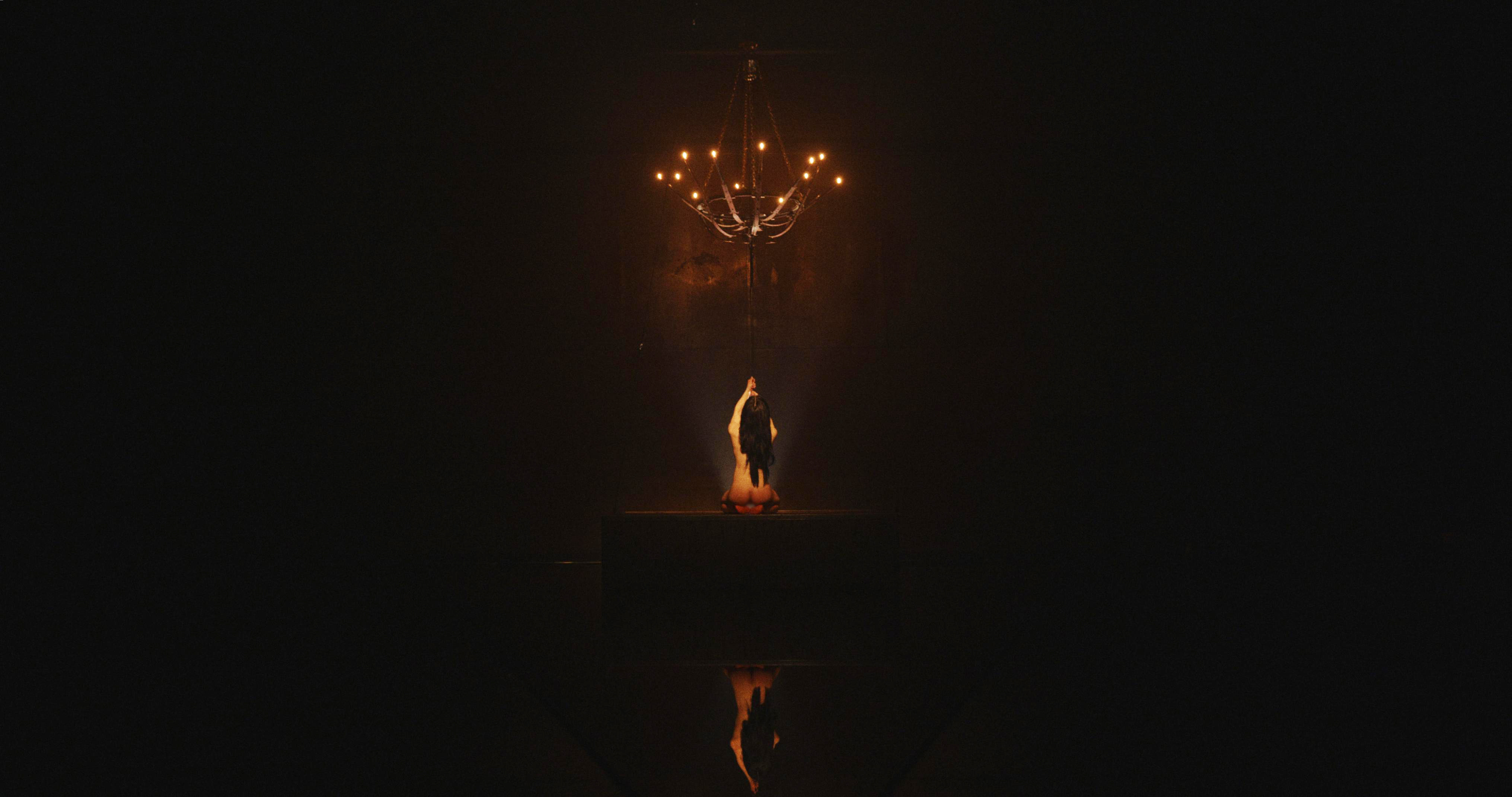 Dunkelheit. Stille. Nun müsste sie folgerichtig nackt erscheinen, spüre ich als Betrachter – das tut sie auch und zündet Kerzen an.