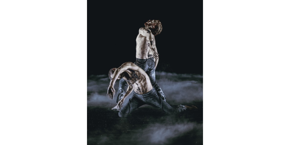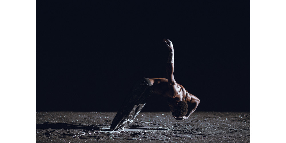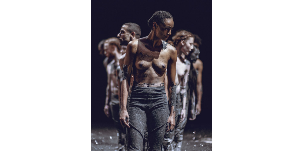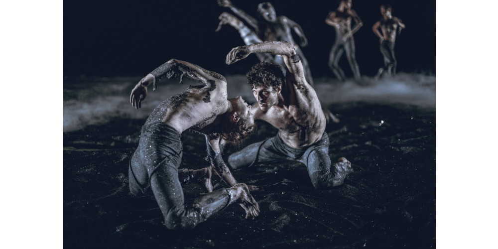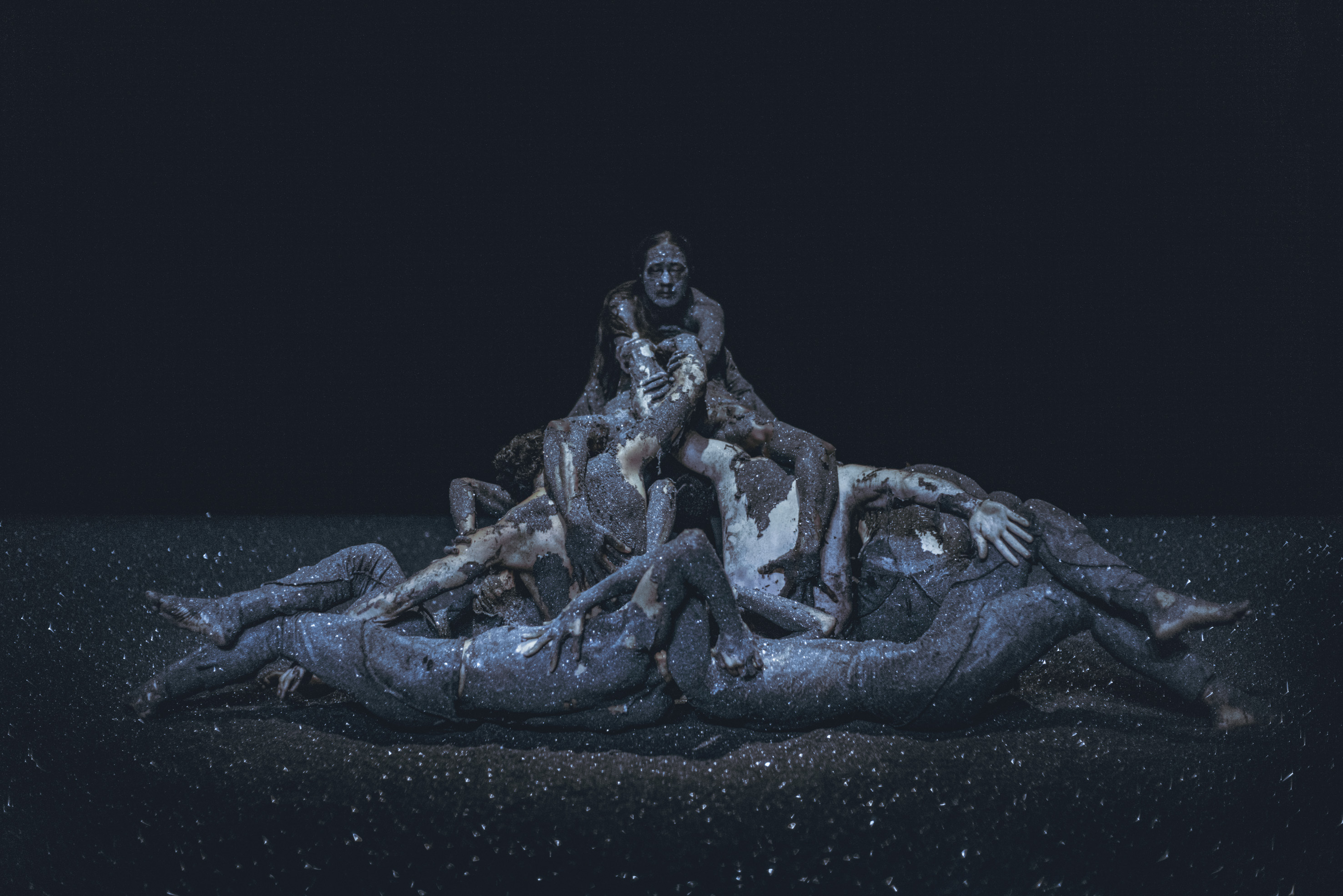 Den Höhepunkt des Stücks bildet das eindrucksvolle Finale: Die Tänzer*innen werden von einer weißen Stärke-Wassermischung übergossen und scheinen nach und nach wie Wachskerzen langsam in den schwarz glitzernden Boden zu schmelzen.