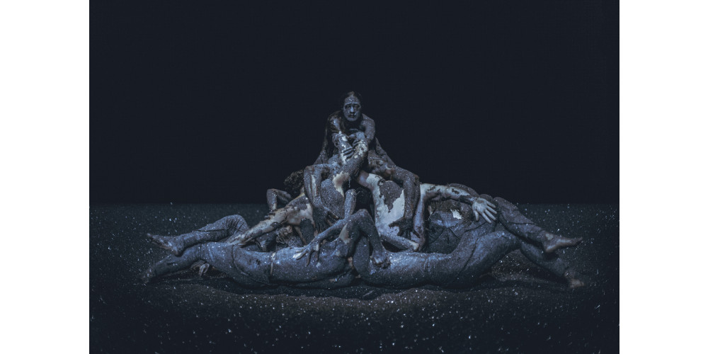 Doch nicht nur die Choreografie, sondern auch das kinematisch wirkende Bühnendesign von Kohei Nawa mit Yukiko Yoshimoto und die intensive Musik von Tim Hecker mit Xavier Jacquot zeigen dem Publikum eine alternative Version der Welt. Die Musik mit andersweltlichen Klängen und immer lauter werdenden Beats verschmelzen mit dem Bühnenbild, das an eine raue Mondlandschaft erinnert und erschaffen ein einzigartiges visuelles und akustisches Schauspiel.
