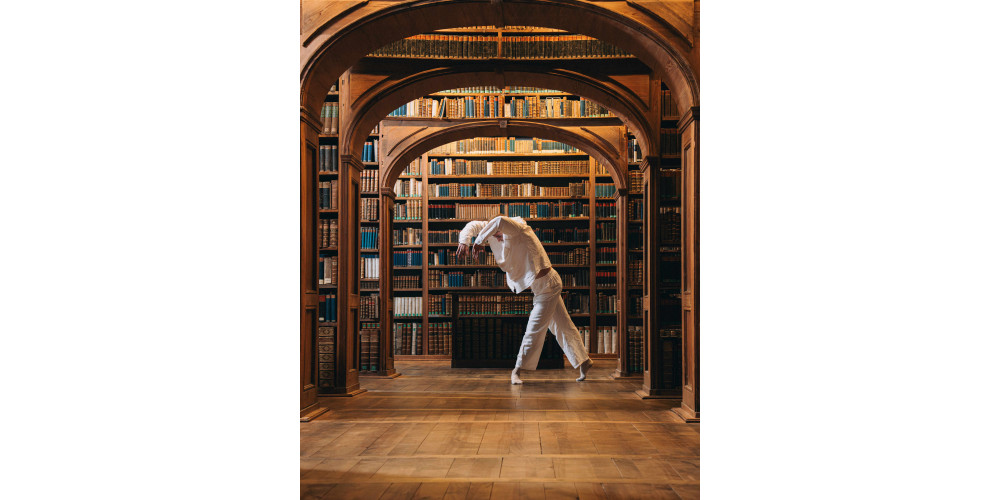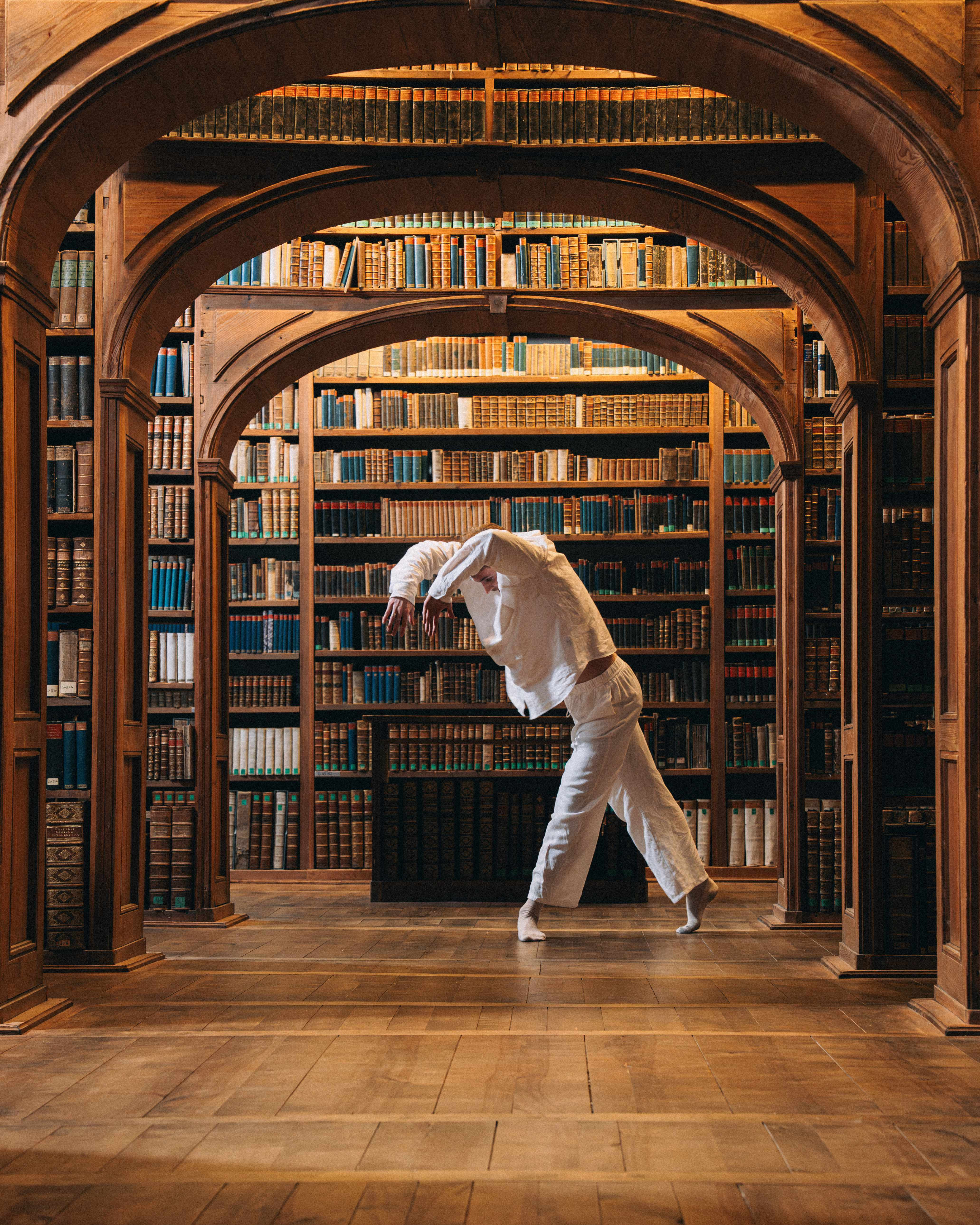 Aus dieser stillen Fülle hebt sich zu Beginn des Tanzfilms ein Moment hervor: Ein Tänzer entdeckt den Roman „Der große Gatsby“. Fast zufällig – und doch unausweichlich – zieht er dieses Buch aus der Menge. Es ist ein Werk, das die glitzernde Oberfläche der 1920er-Jahre beschwört und zugleich ihre Risse offenlegt: den trügerischen Glanz des Reichtums, die Fragilität von Identität und das unerreichbare Versprechen des „American Dream“. Bereits in dieser ersten Geste liegt eine Vorahnung von Jay Gatsbys „Bewegung“ – dem Griff nach etwas, das sich immer wieder entzieht.