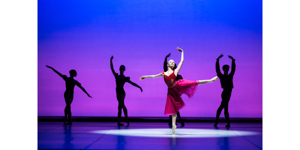 Geschwind, klar und rhythmisch pointiert präsentieren sich die Tänzer*innen des Junior Ballett zu den ersten Klaviertönen in Allegro Brilliante zu Tschaikovskys „Piano Concerto No. 3“. George Balanchine beschrieb sein Werk als ein Maximum an choreografischer Entwicklung in einem eher begrenzten Zeit- und Raumgebiet. Fünf Tänzer*innen und fünf Tänzer zeigen von der ersten Bewegung an: Heute ist dieser Abend ihre Zeit und ihr Raum.