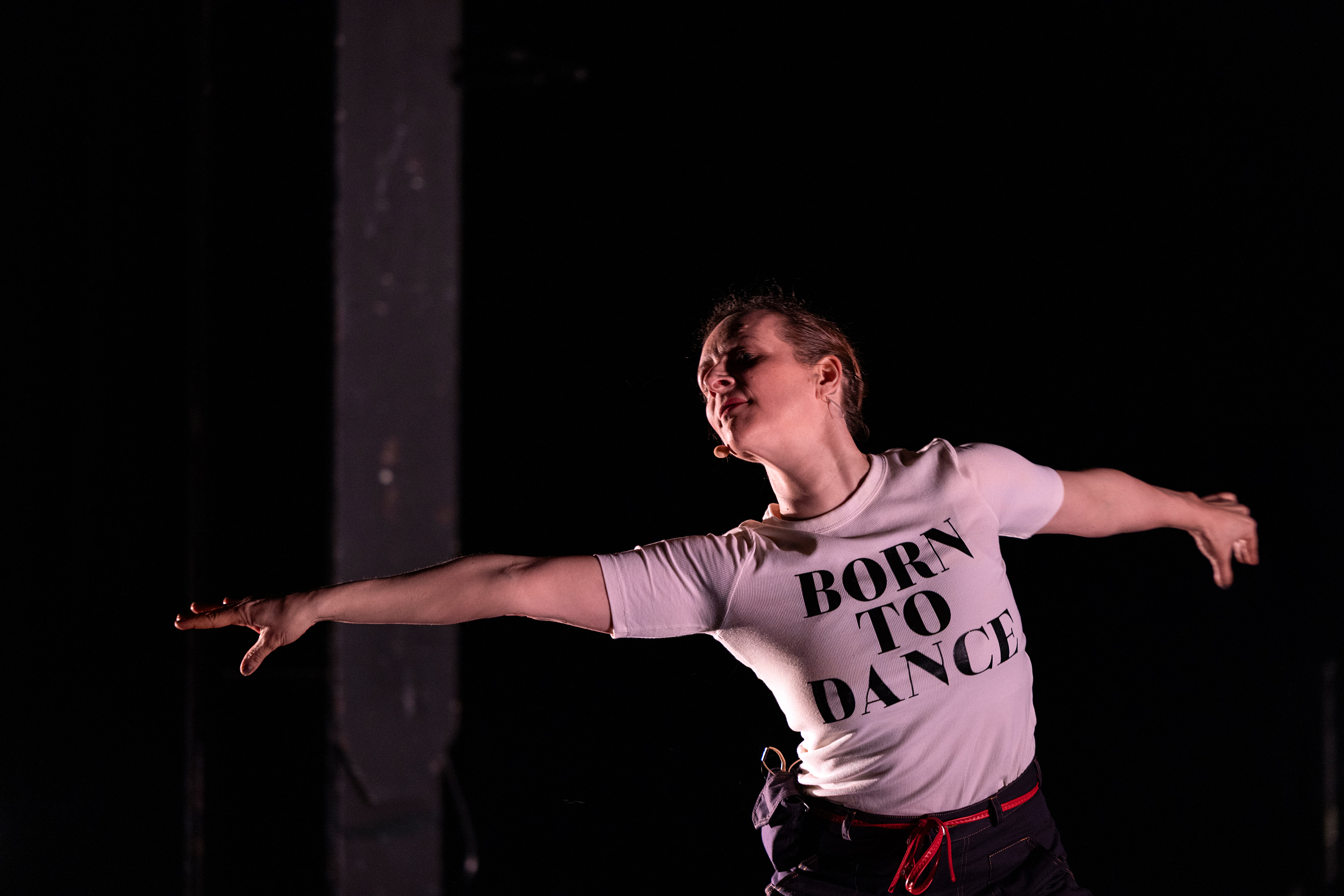 Schon als Kind hat Jenny gerne und viel getanzt, sagt sie, zuhause im Wohnzimmer, und so stellt sie sich vor, dass sie das jetzt für ihn tut – zu den Klängen der „Aufforderung zum Tanz“ von Carl Maria von Weber (für die Musikauswahl zeichnet Jennys Vater Horst verantwortlich, auch ihre Mutter Orda war an der Entstehung des Stücks beteiligt). Wunderbar leichtfüßig und raumgreifend breitet sich Jenny Beyer hier aus – es ist die reine Freude an der Bewegung, am Schwingen und Springen.