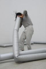 White cube, grey matter: Ein Duo als performative Installation stülpt die Materie über den Geist. Oder andersrum. Und das ist gerade mal eine Masterarbeit. Äußerst beeindruckend.